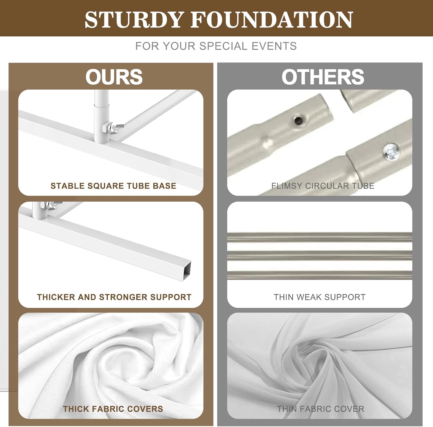 • High Quality-The arch backdrop stand is made of high-quality metal material, durable and rust-proof, each base is equipped with 2 T-shaped tubes to increase the overall strength and stability, not easy to twist, and can be used indoors and outdoors. The double-sided arch cover is made of high-elastic spandex, which is smooth to the touch and wrinkle-resistant