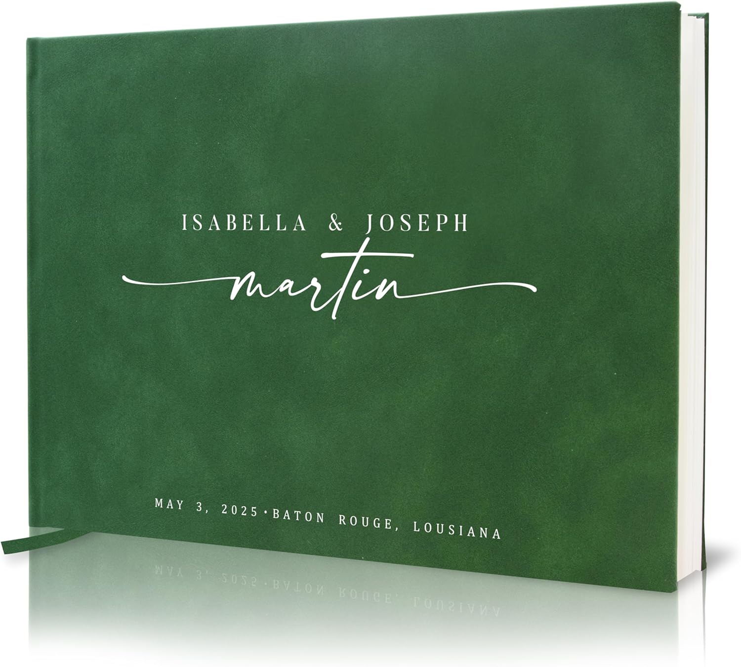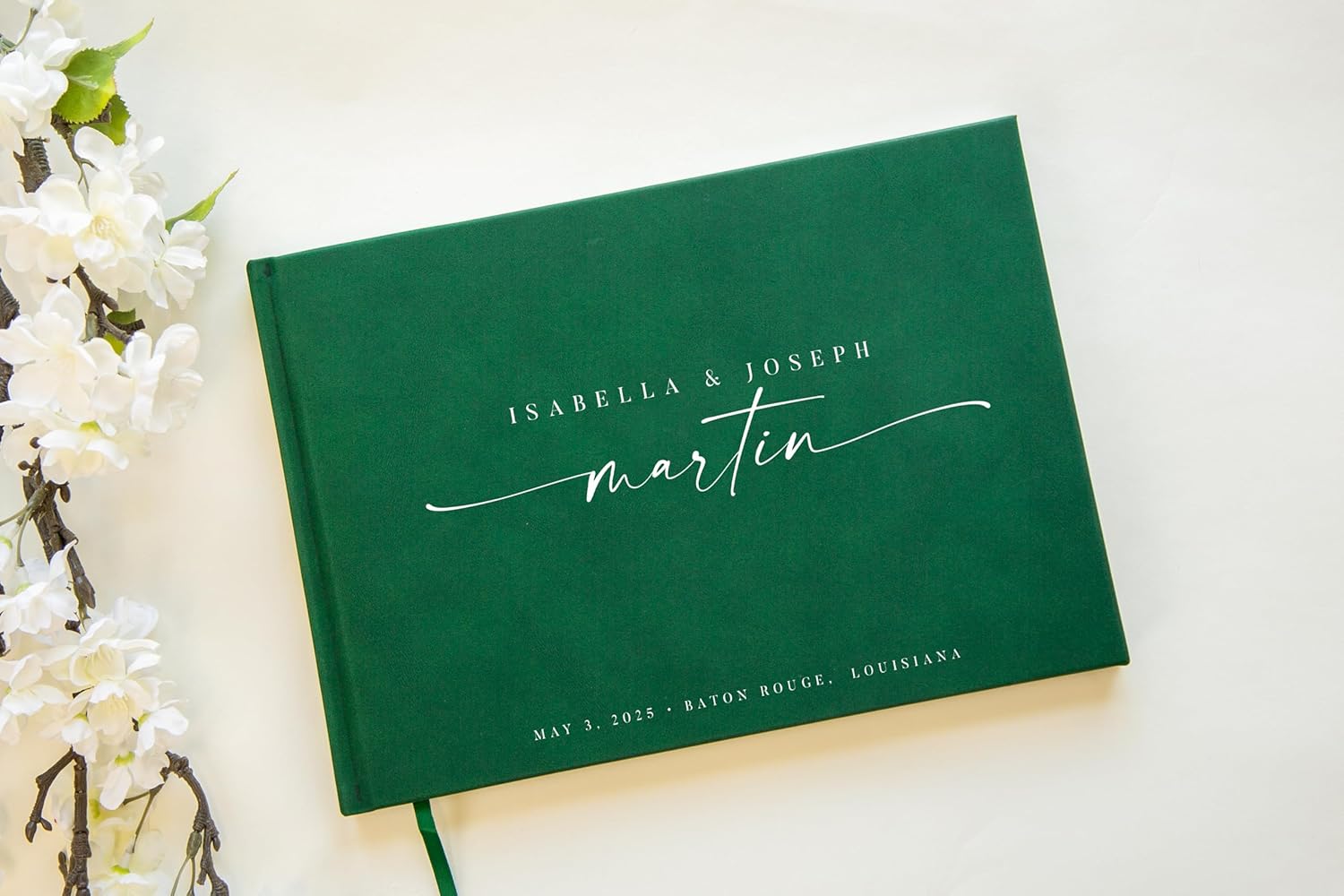 Personalized Guest Book - 11.5" x 8.5" Custom Bride & Groom Names with Bookmark and Hard Cover 140 GSM Blank Pages, for Weddings Guest Book, Engagements, Birthdays, Special Events, Emerald