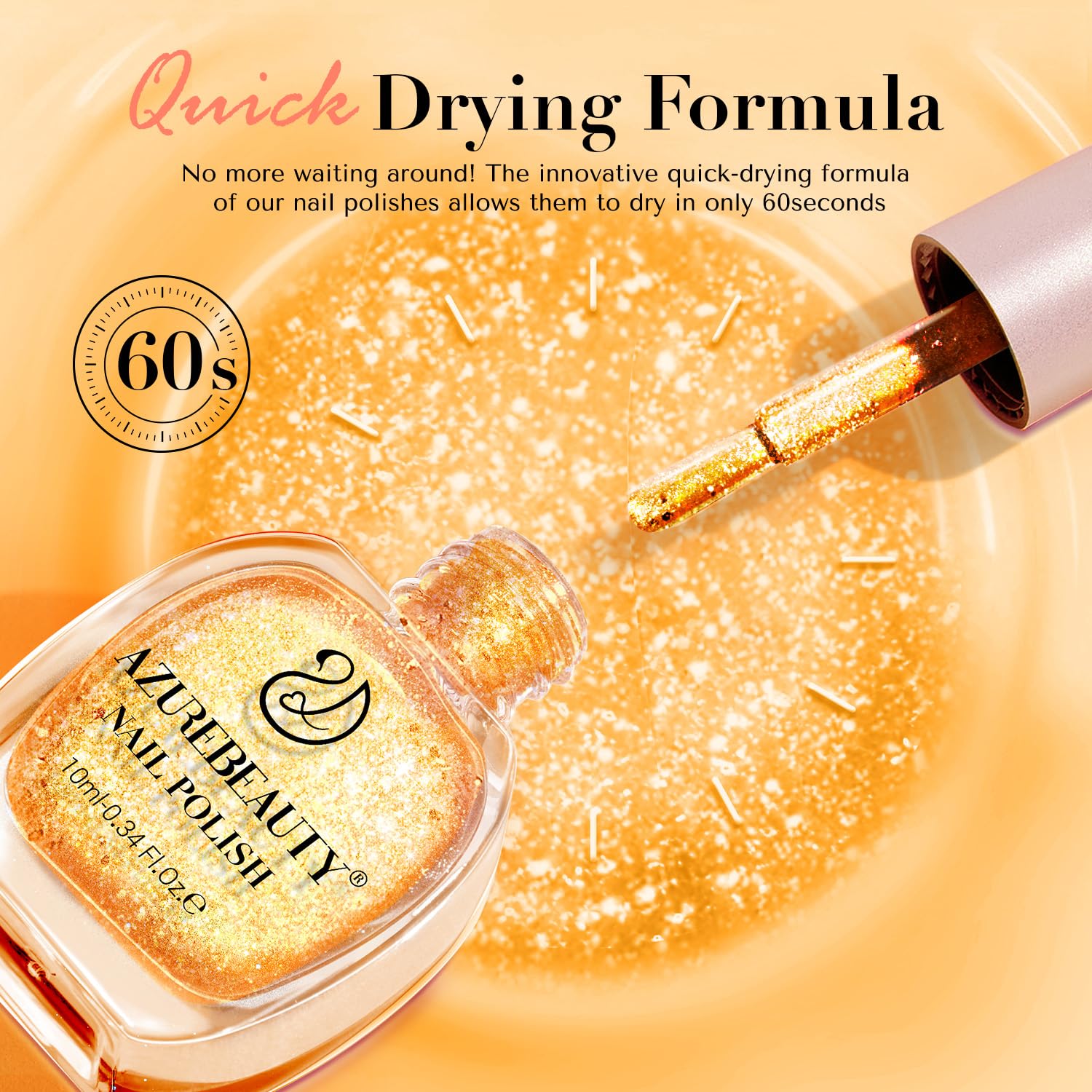 • AZUREBEAUTY Shimmer Neon Glitter 4 colors Nail Polish Set: 4* spring summer pink yellow green purple glitter nail polish, 1* Top coat. This complete one-stop spring nail polish experience comes in an exquisite packaging gift box, making it the perfect choice for female friends