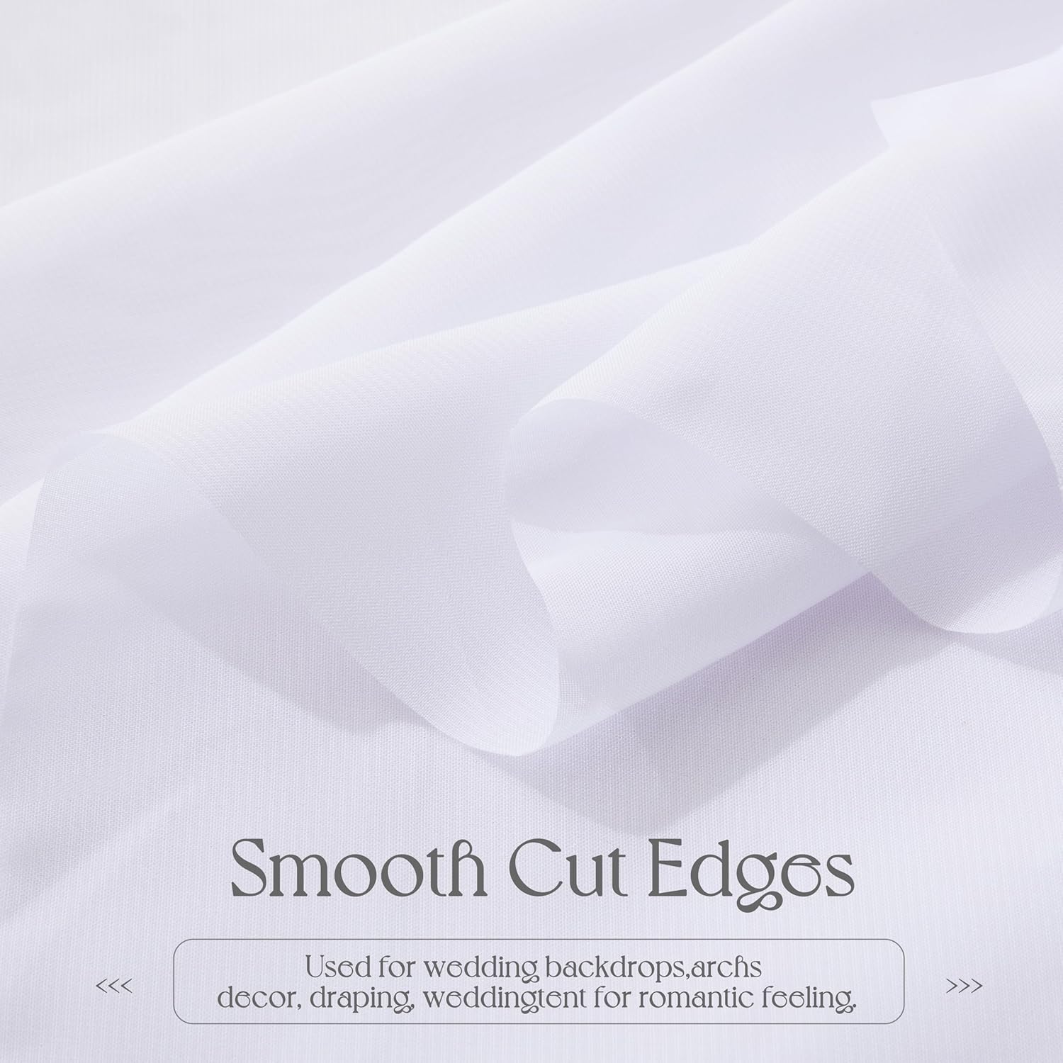 • SOFT CHIFFON FABRIC: Wedding arch sheer draping fabric is made of high-quality 100 percent wrinkle-free chiffon fabric. The chiffon backdrop drapes are silky smooth to touch and easy to hang, suitable for decorating wedding arches, party backdrops, photo backdrops. Machine washable, reusable, not easy to wrinkle and fade.