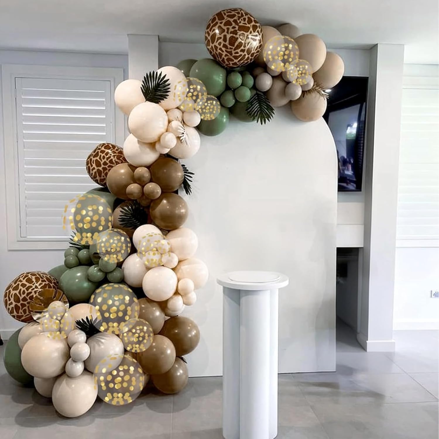 Green and Brown Balloons, 12 Inchs Sage Green Deer Print Gold Confetti Balloons for Kids Woodland Baby Shower Decorations Safari Jungle Dinosaur Theme Birthday Party Wedding Grauation Supplies