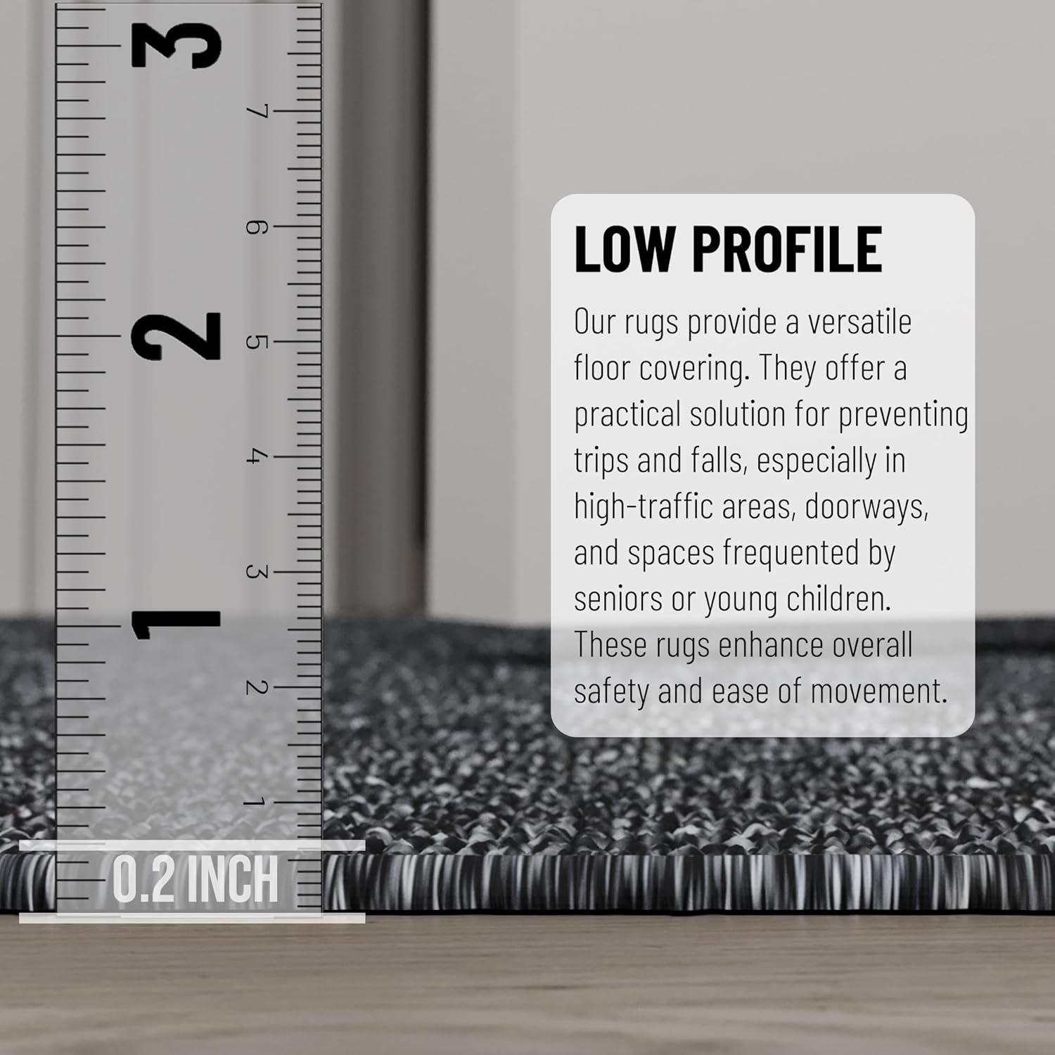 • [ULTRA THIN]: An ultra thin pile thickness of 0.2 inches offers ideal functionality that is perfect for busy areas, underneath furniture, and in entryways as it will not obstruct doorways.