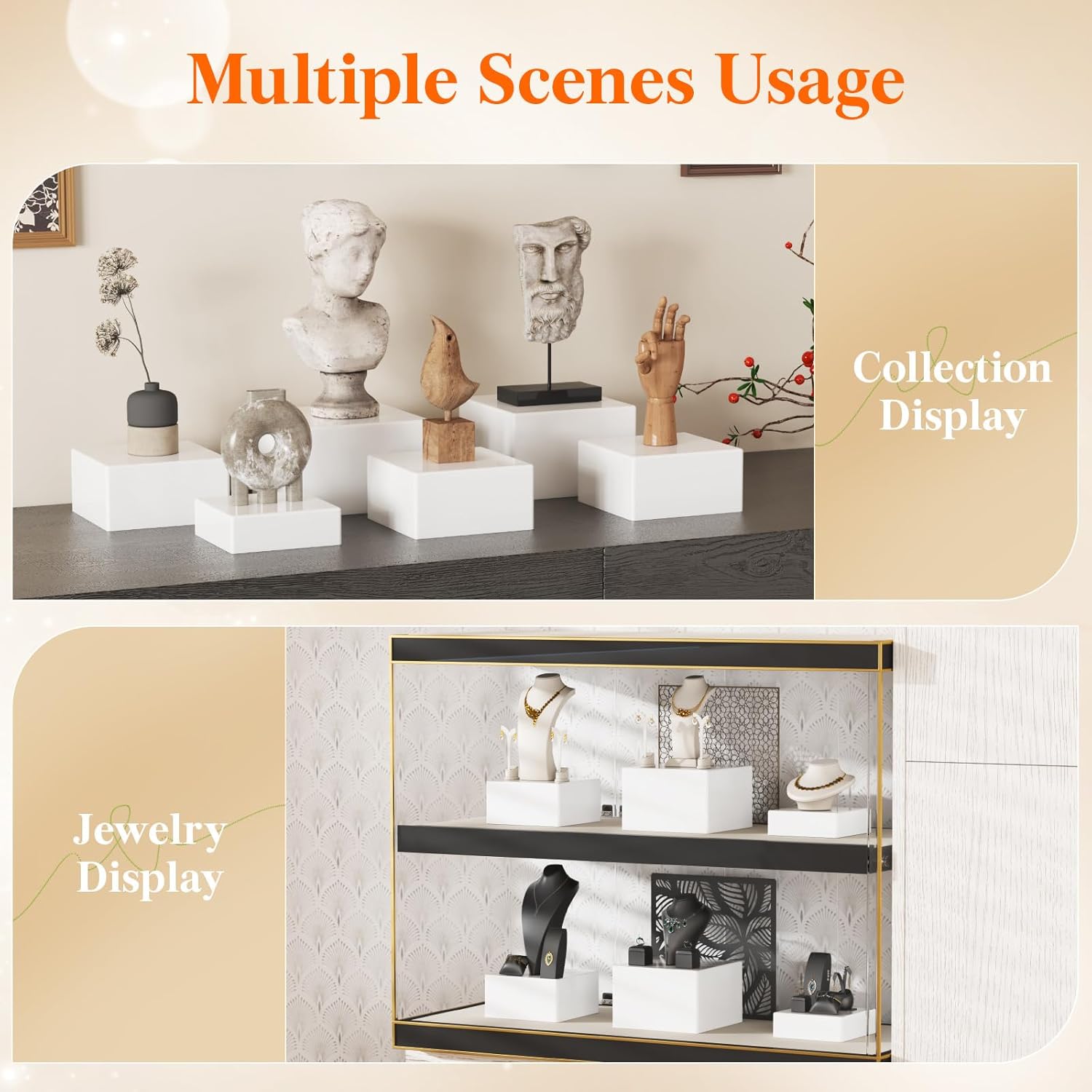 • Product Sizes – Includes 3 sizes: Large 7.8"×7.8"×5", Medium 7"×7"×3.5", and Small 6"×6"×2". The largest riser (7.8") can hold up to an 8" round cake or similar-sized item. Please check the dimensions carefully before purchase. These risers are best suited for desserts, cupcakes, snacks, and small collectibles