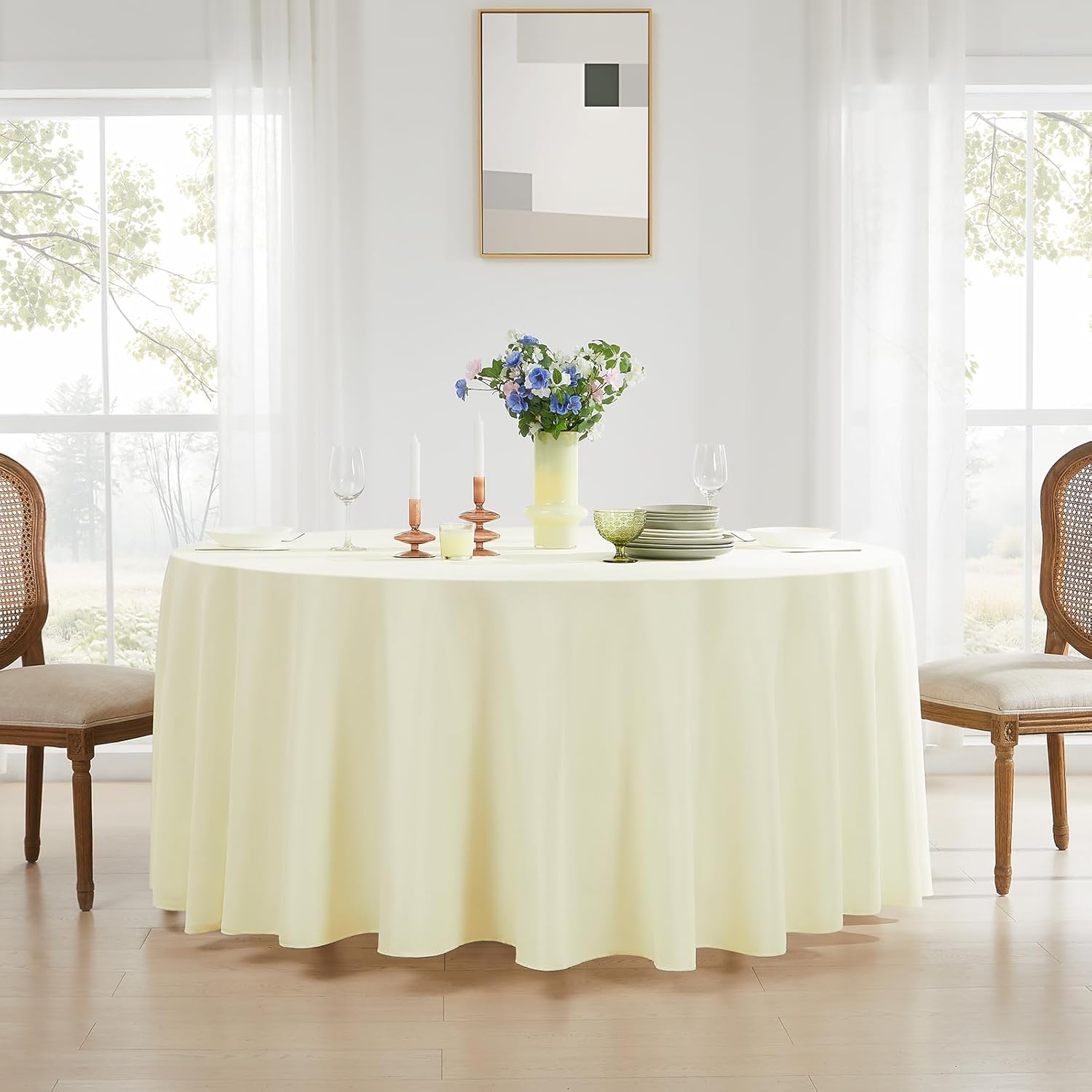 Round Tablecloth 120 Inch Tablecloth 10 Pack Ivory Table Cloths Washable Decorative Polyester TableClothes Cover for Dining Table Banquets Buffet Parties and Wedding