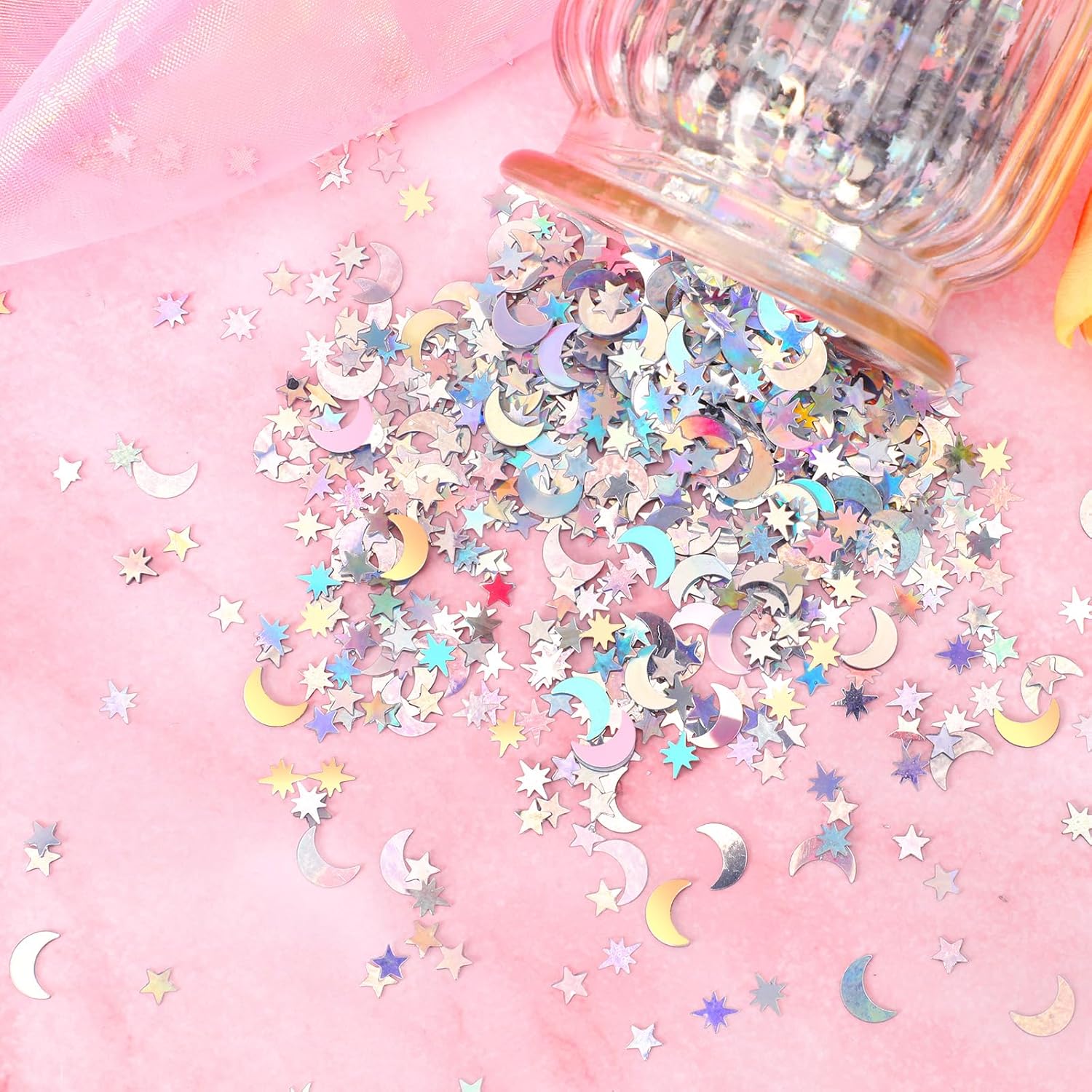 • Various Sizes and Shapes: These glitter stars have various shapes and sizes, such as five-pointed star, four-pointed star, eight-pointed star and moon. Each shape is full of creativity and fun, creating a romantic, lively or dreamy atmosphere for any occasion