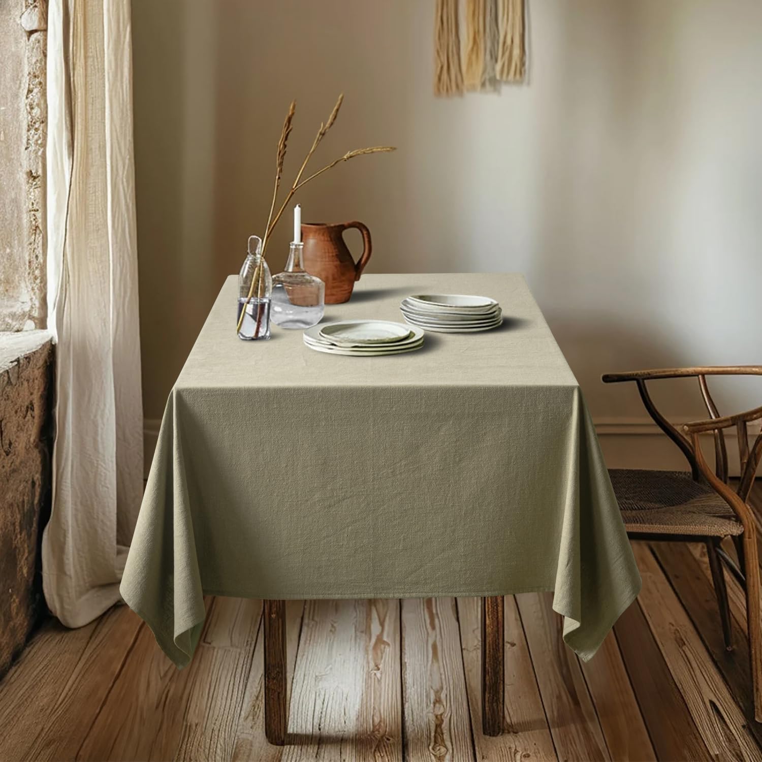 MIULEE Linen Cotton Blend Tablecloth Rectangle, Luxury Waterproof Stain Resistant Durable Farmhouse Oblong Table Cloth for Dining Party Weddings Birthday Events Boho Decor, 52 x 84 inch, Olive Green