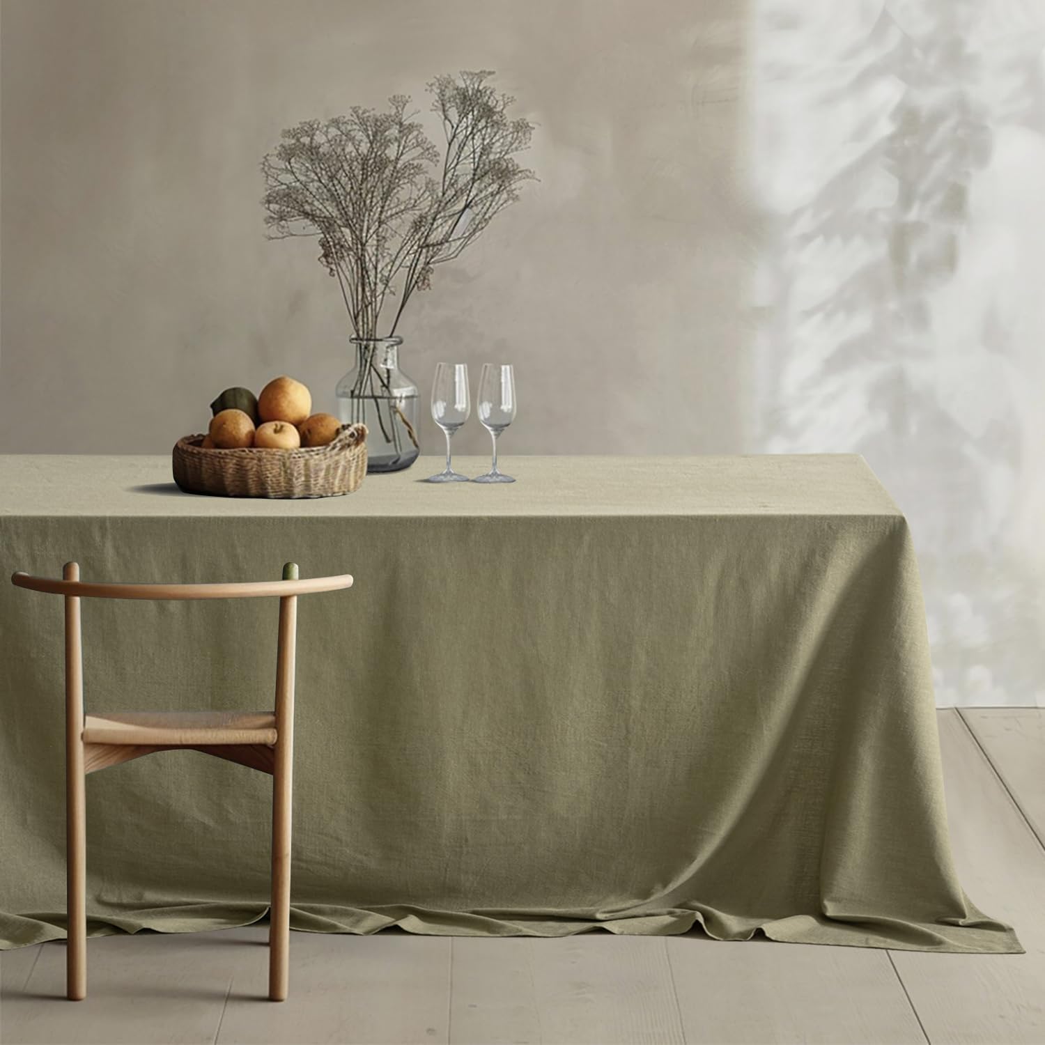 MIULEE Linen Cotton Blend Tablecloth Rectangle, Luxury Waterproof Stain Resistant Durable Farmhouse Oblong Table Cloth for Dining Party Weddings Birthday Events Boho Decor, 52 x 70 inch, Olive Green