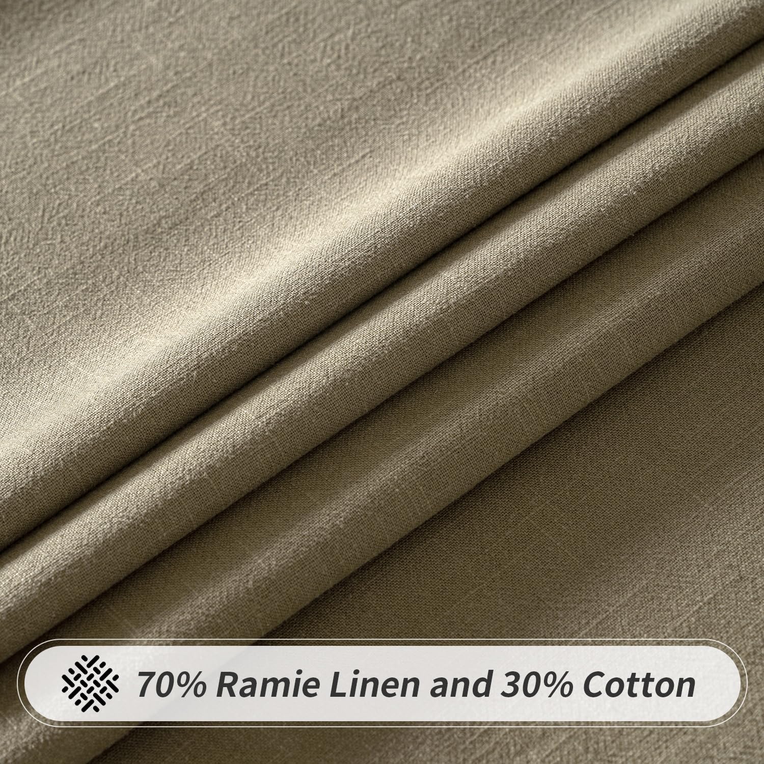 • Natural Linen Fabric:Our tablecloth is crafted of 70% natural ramie linen and 30% cotton. Natural linen fabric makes it soft, comfortable, breathable, and durable for all-season use. It is made of medium weight durable cotton linen that is better protecting your dining table, it also has a good draped effect.