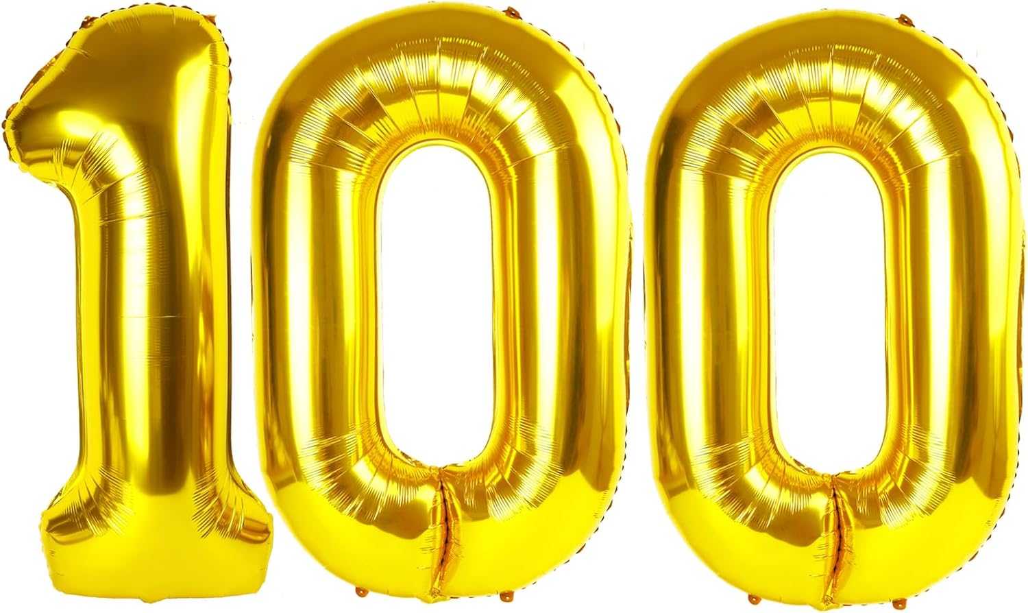 Gold Mylar Balloons - 40 inch Number 100, Gold Foil Balloon for 100 Birthday Party & Anniversary Celebrations