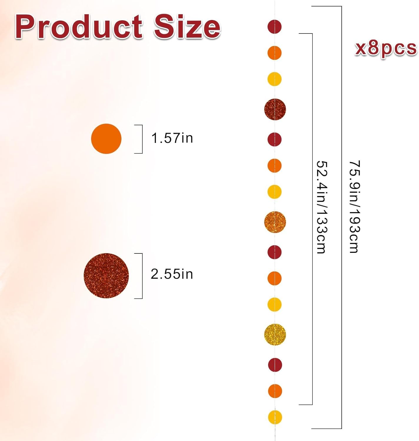 8 Pack Orange Red Glitter Dot Garland, Hanging Circle Streamers Banner, Backdrop Hanging Decorations for Fall Parties, Thanksgiving, Autumn Weddings, Baby Showers and Festive Holiday Decorations