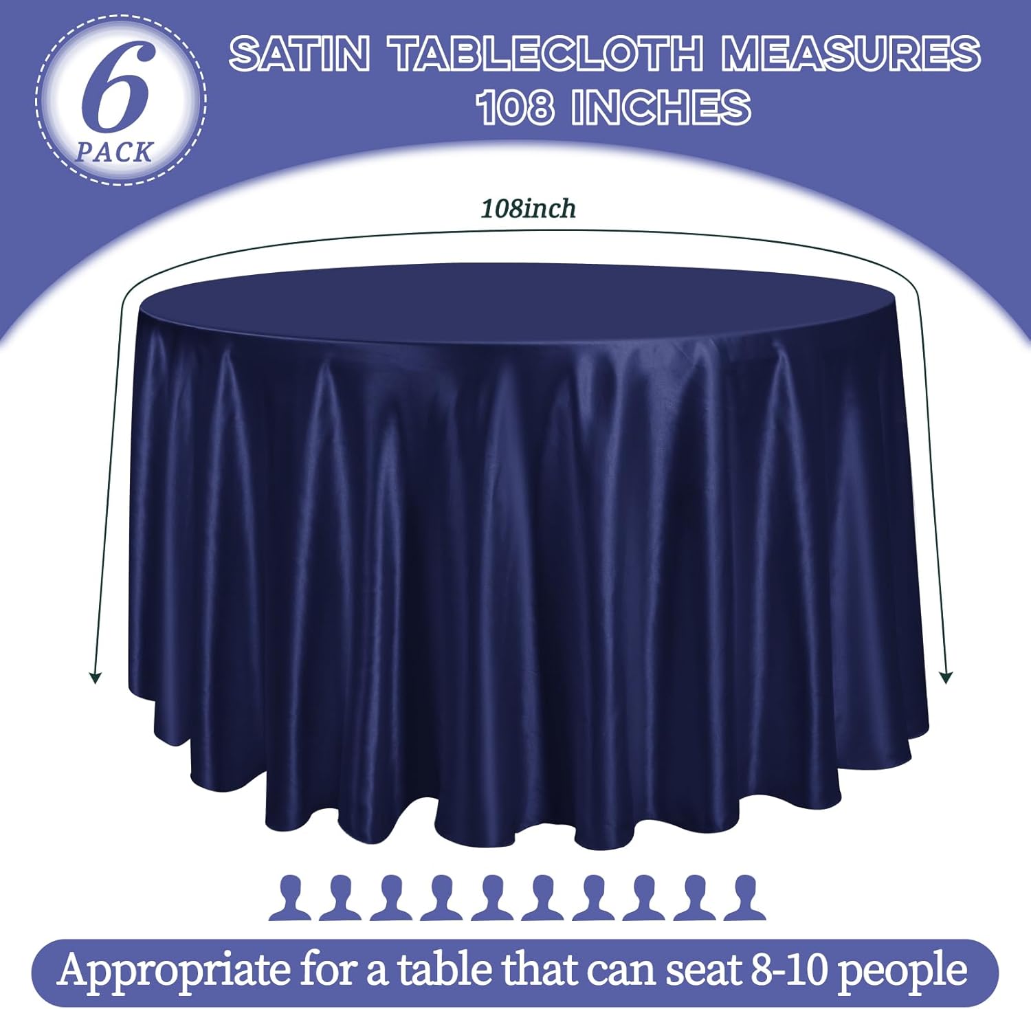 fani 6 Pack 108 Inch Navy Blue Satin Tablecloth - Premium Bright Silky Round Tablecloth Overlay Smooth Fabric Table Cover, Table Decoration for Wedding Party Banquet Events Restaurant Kitchen Dining