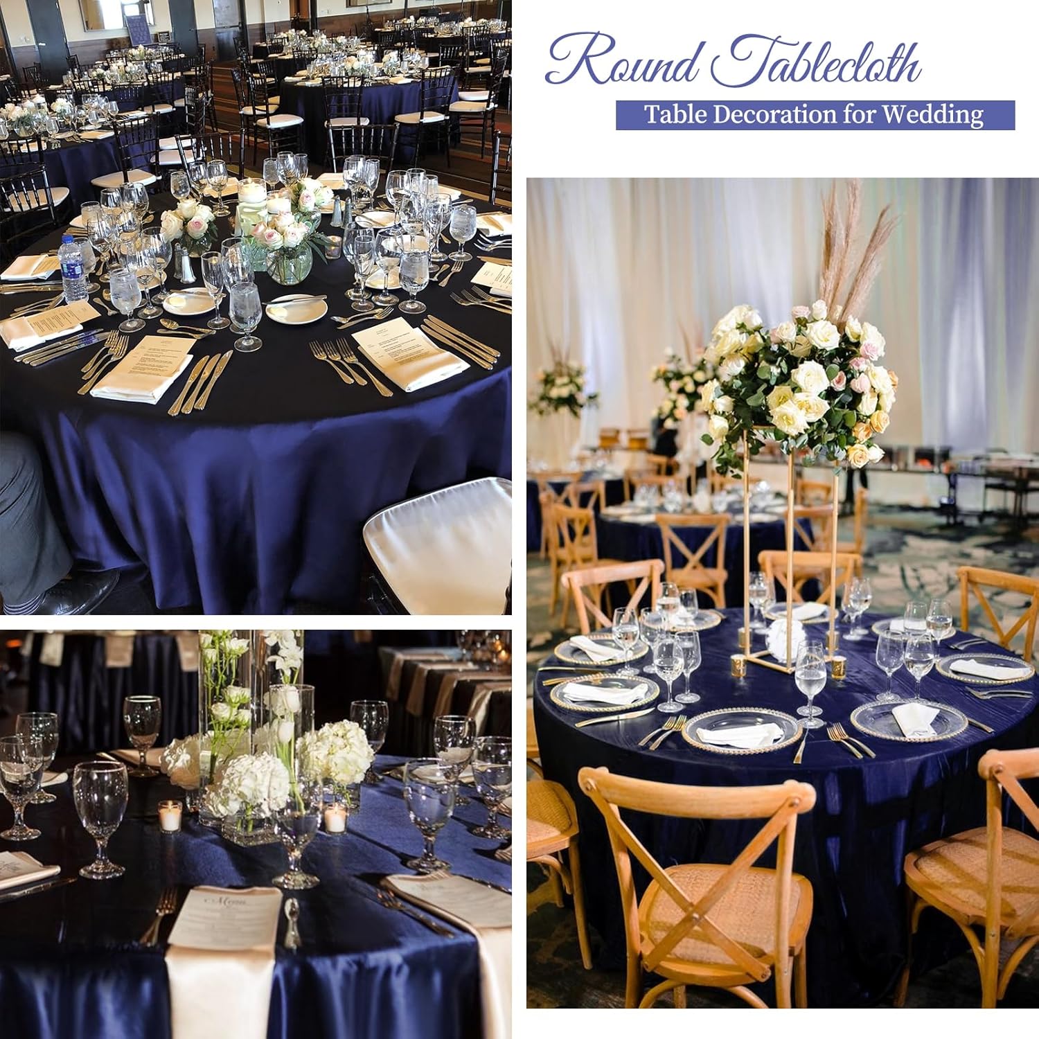 • 【Round Satin Tablecloths】6 Pieces premium navy blue satin round tablecloth. The size of silk satin table cover is 108 inches, large enough to decorate a table that can accommodate 8-10 persons. It is suitable for most household round tables and can meet your different needs. Sufficient quantities are sufficient for party events to enhance the charm of your event decoration. The tablecloth size is usually larger than your table size. Please measure your table size before buying.