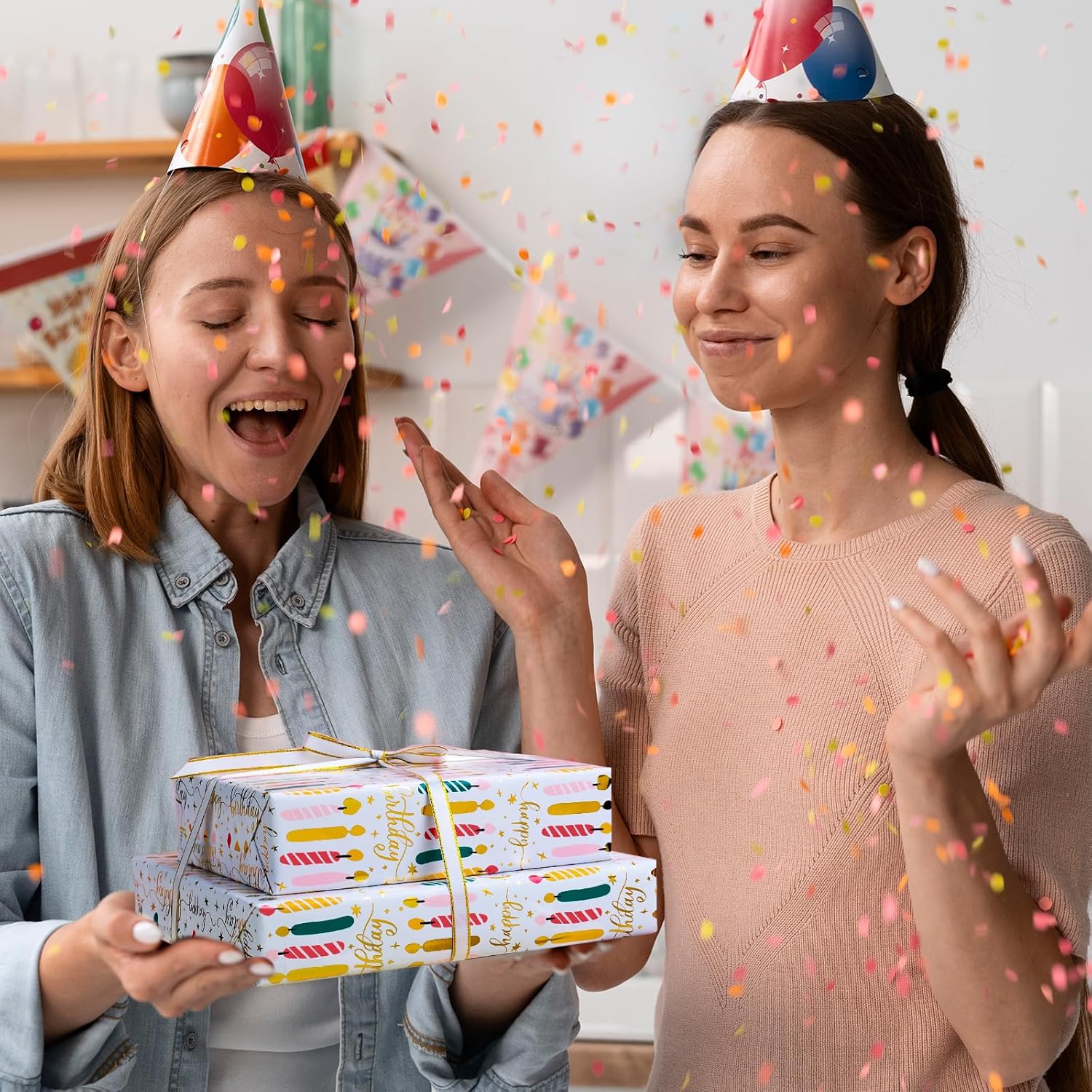 • Girl Birthday Wrapping Paper Roll: Creative thick shiny gold gift wrapping paper comes with a roll 17" x 33ft, providing you with a total of 46.8 sq ft of paper, enough to wrap SMALL and MEDIUM sized gifts. Please confirm gift size BEFORE placing order