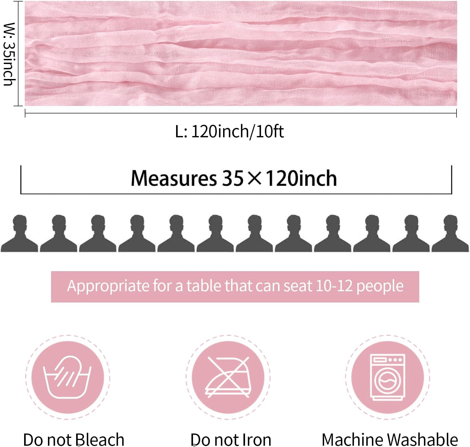 • 🌸3 Pack Cheesecloth Table Runner: You will get 3 pieces 10ft pink cheese cloth table runner, enough quantity is suitable for wedding banquets ,baby shower, various parties or other event, the size of each table runner is approximately 35 x 120 inches / 90 x 305 cm, which is large enough to cover rectangle and round tables, can also be spliced together for long tables. Even can be used for chair cover sashes or decorative napkins, backdrop draping or even gift wrapping or mostly anything table runners.Easy way to add texture to table decor and you can stretch and smooth them out as much as you'd like.