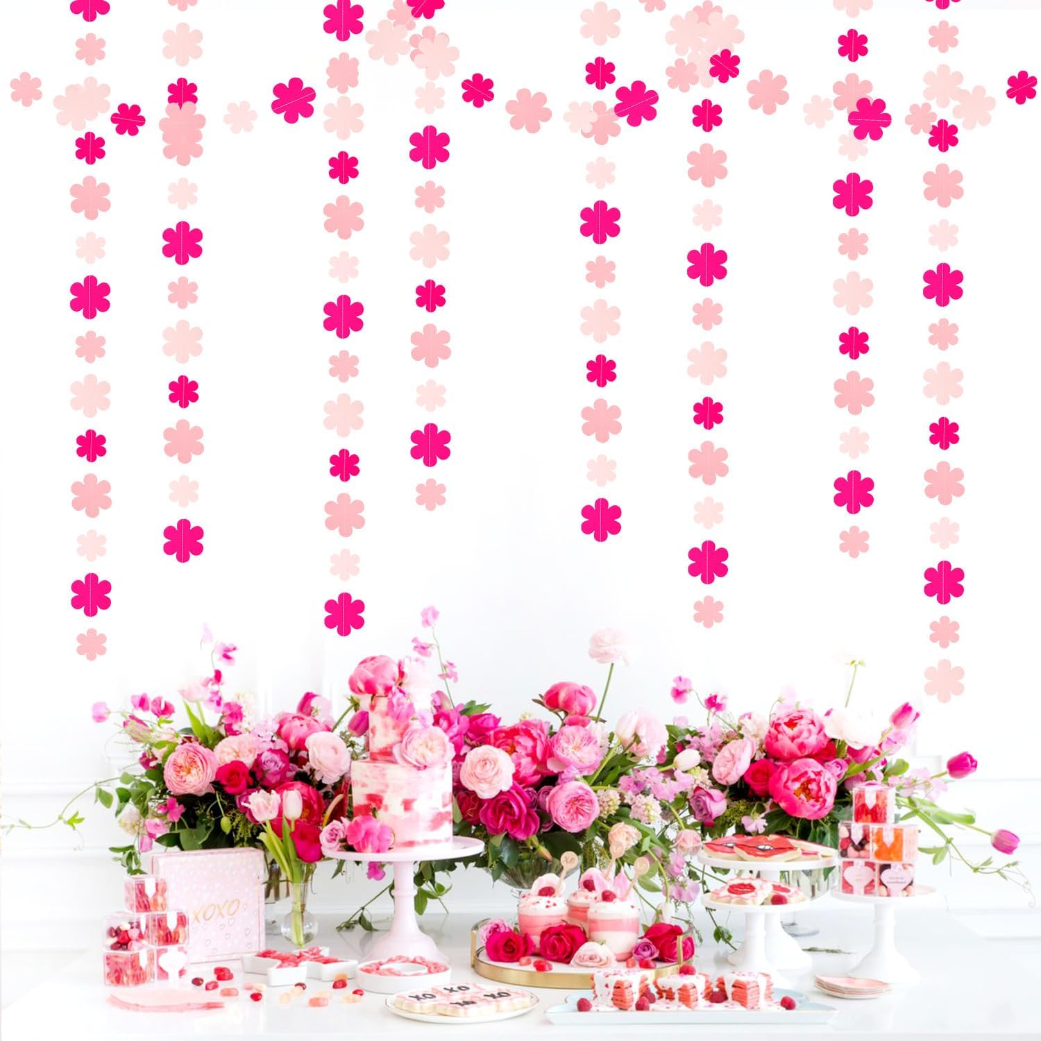 Pink Party-Decorations Streamers-Garland - 52ft Flower Hanging Paper Banner, Birthday Baby Bridal Shower Bachelorette Wedding Decor Hugfond