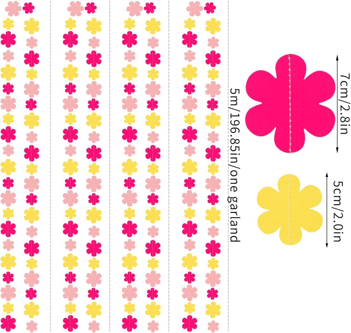 Hot-Pink Yellow Fall Party-Decorations Streamers-Garland - 52ft Boho Flower Hanging Paper Banner, Groovy Birthday Baby Bridal Shower Bachelorette Wedding Classroom Decor Hugfond