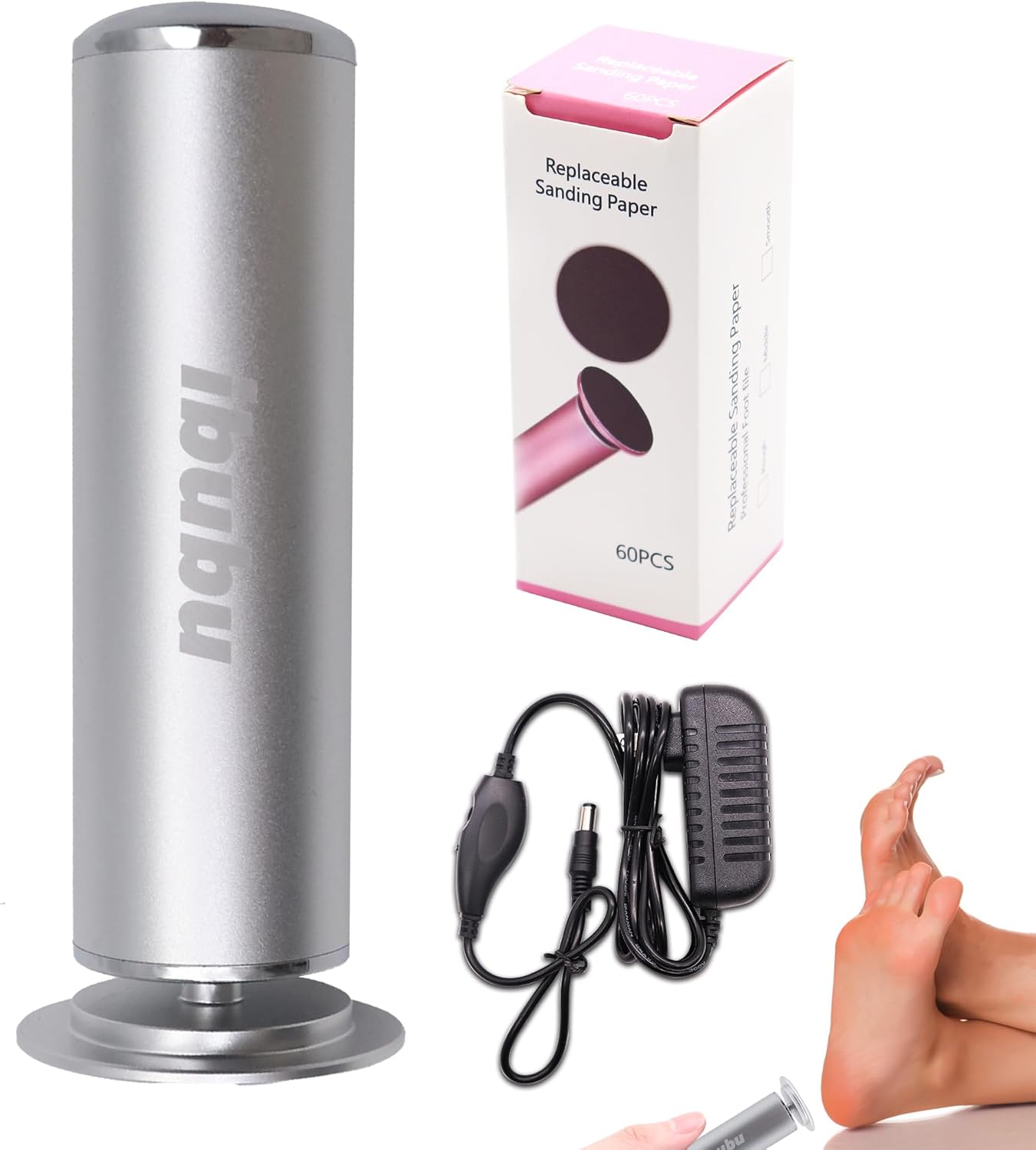 • 【ibubu Packaging Details】1 x elelctric foot file, 1 x box repacement sandpaper disk(60pcs), 1 x US plug, 1 x user manual. Please note that our Electric Feet Callus Remover products and packaging both feature our brand logo 'ibubu'. Products without the 'ibubu' logo are not produced by our manufacturer