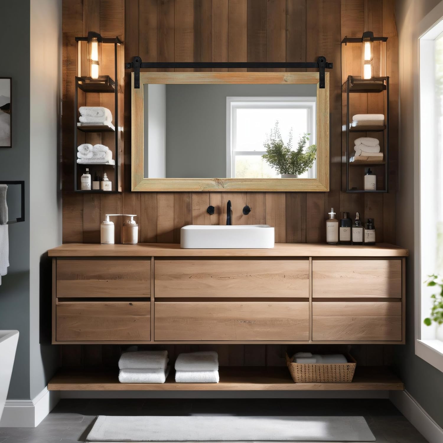 • VINTAGE DESIGN: This farmhouse mirror was inspired by a barn door and designed. It is a perfect combination of rustic and industrial style, which can make your home warm and inviting with the atmosphere of a farmhouse