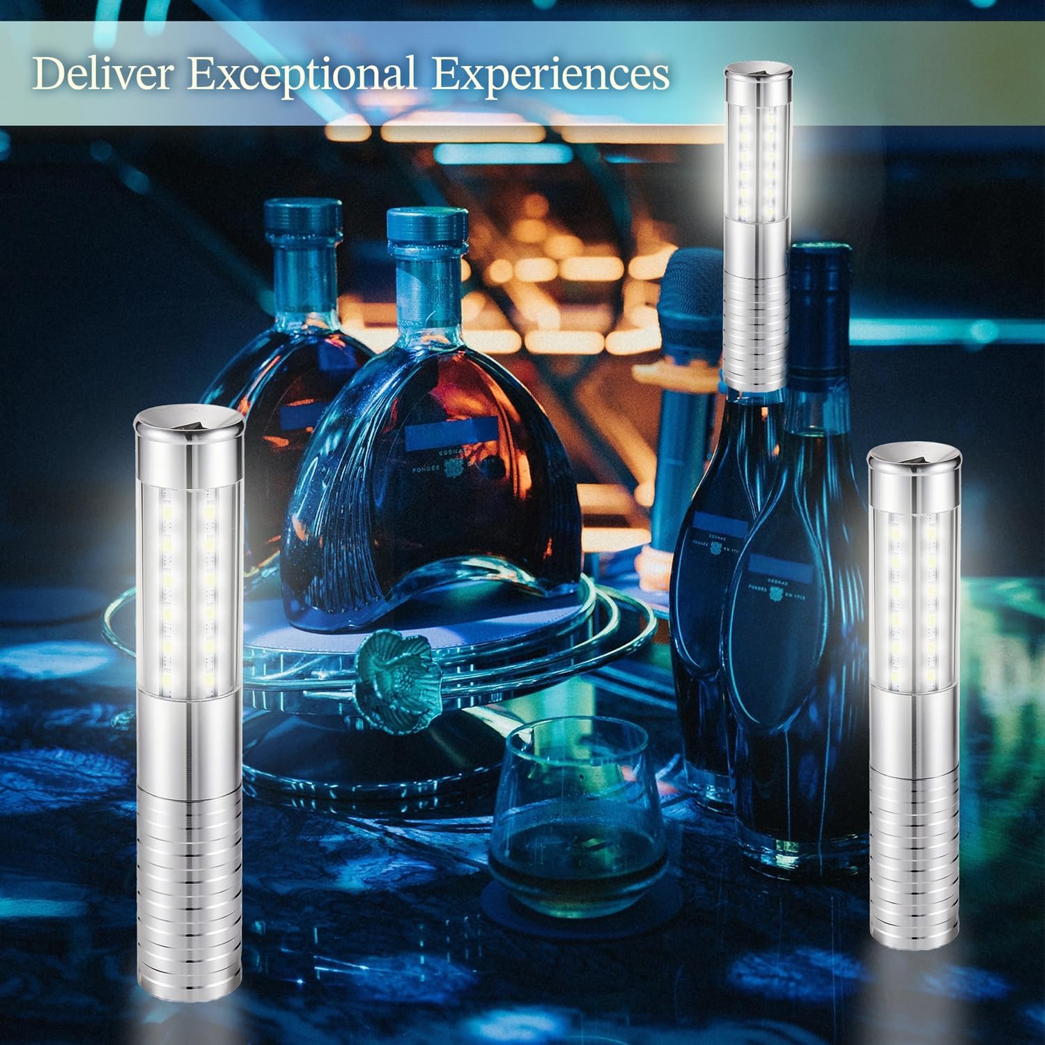 4 Packs Rechargeable LED Strobe Baton Lights Reusable Bottle Service Lights for Liquor Bottles Handheld Service Sparklers for Club Weddings Concert Outdoor Events (Silver-White Light, 4)
