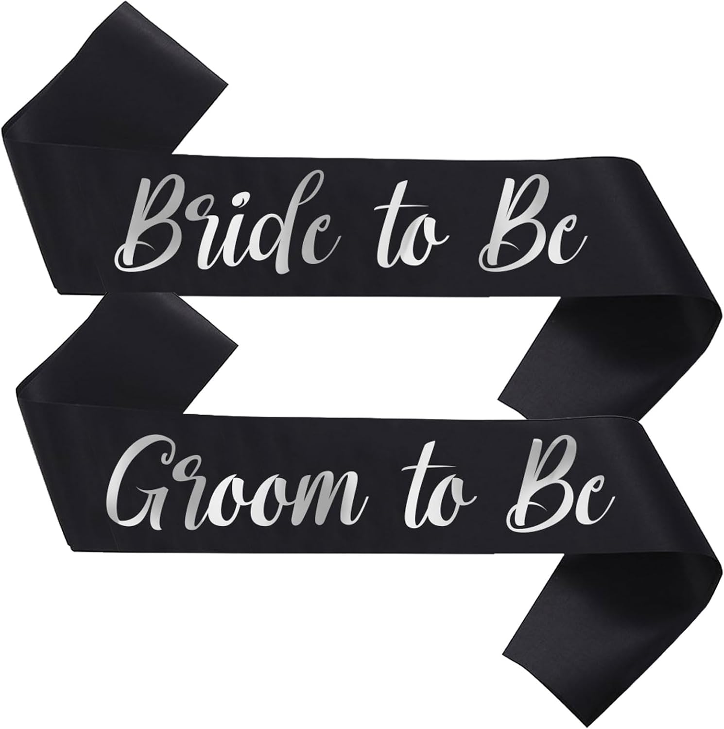 • Packag Includes: Each bridal shower sash comes with 1 piece of Bride to be sash in black +1 piece of Groom to be sash in black +2 individual pins for fixing.