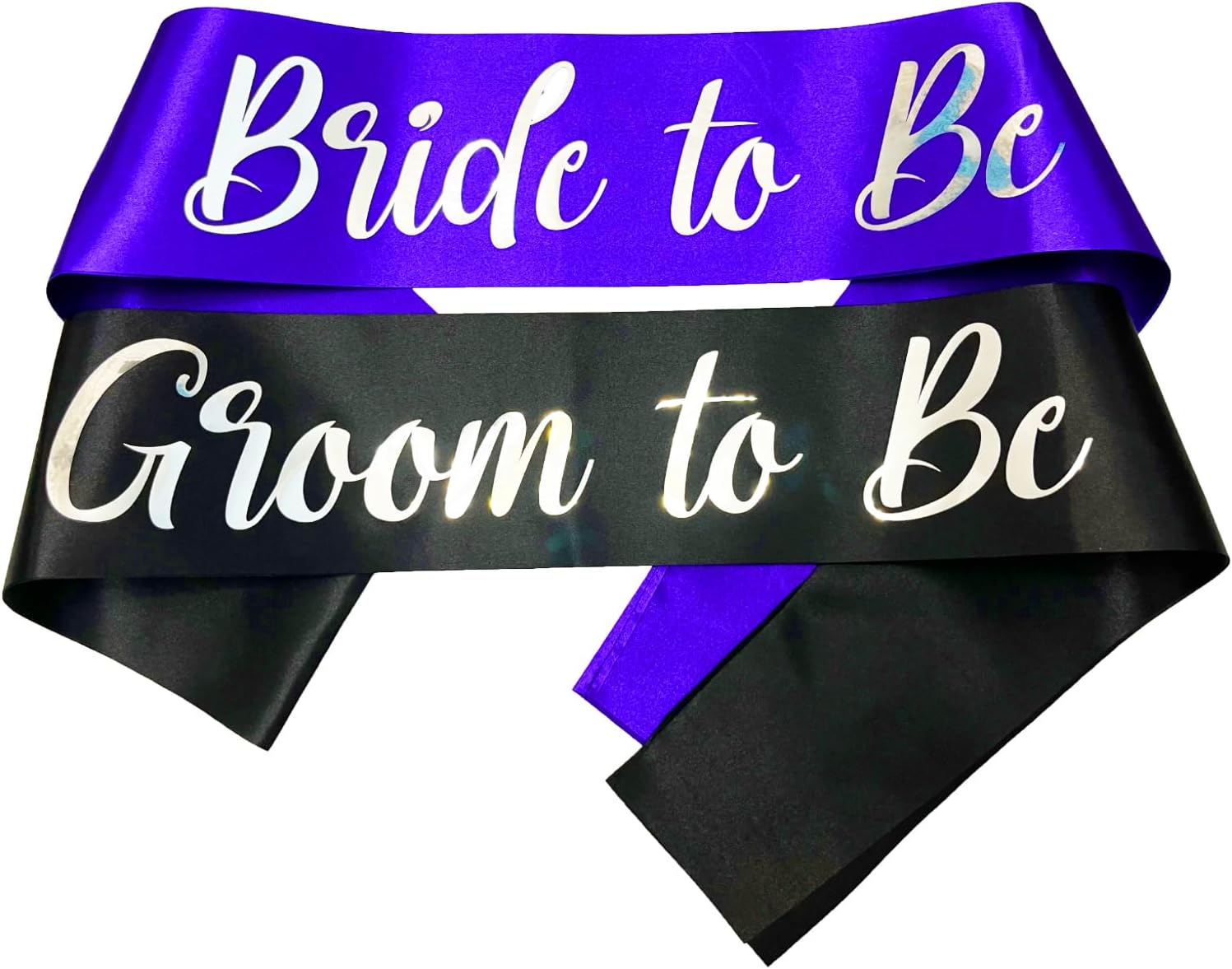 • Packag Includes: Each bridal shower sash comes with 1 piece of Bride to be sash in purple +1 piece of Groom to be sash in black +2 individual pins for fixing.