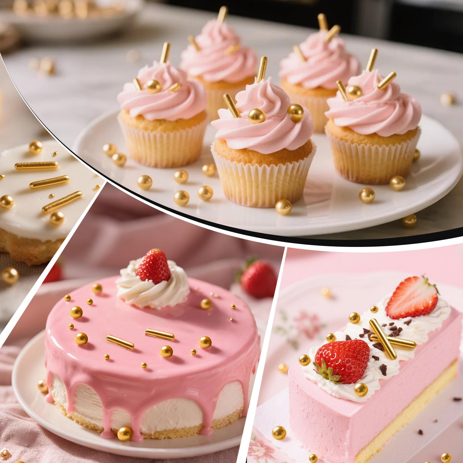 • Whether it's a Easter party, a Thanksgiving feast, a Christmas celebration, or a daily dessert-making, Gold Pearl Rods Sprinkles can intensify the joyous atmosphere and make your baking more pleasant and perfect.