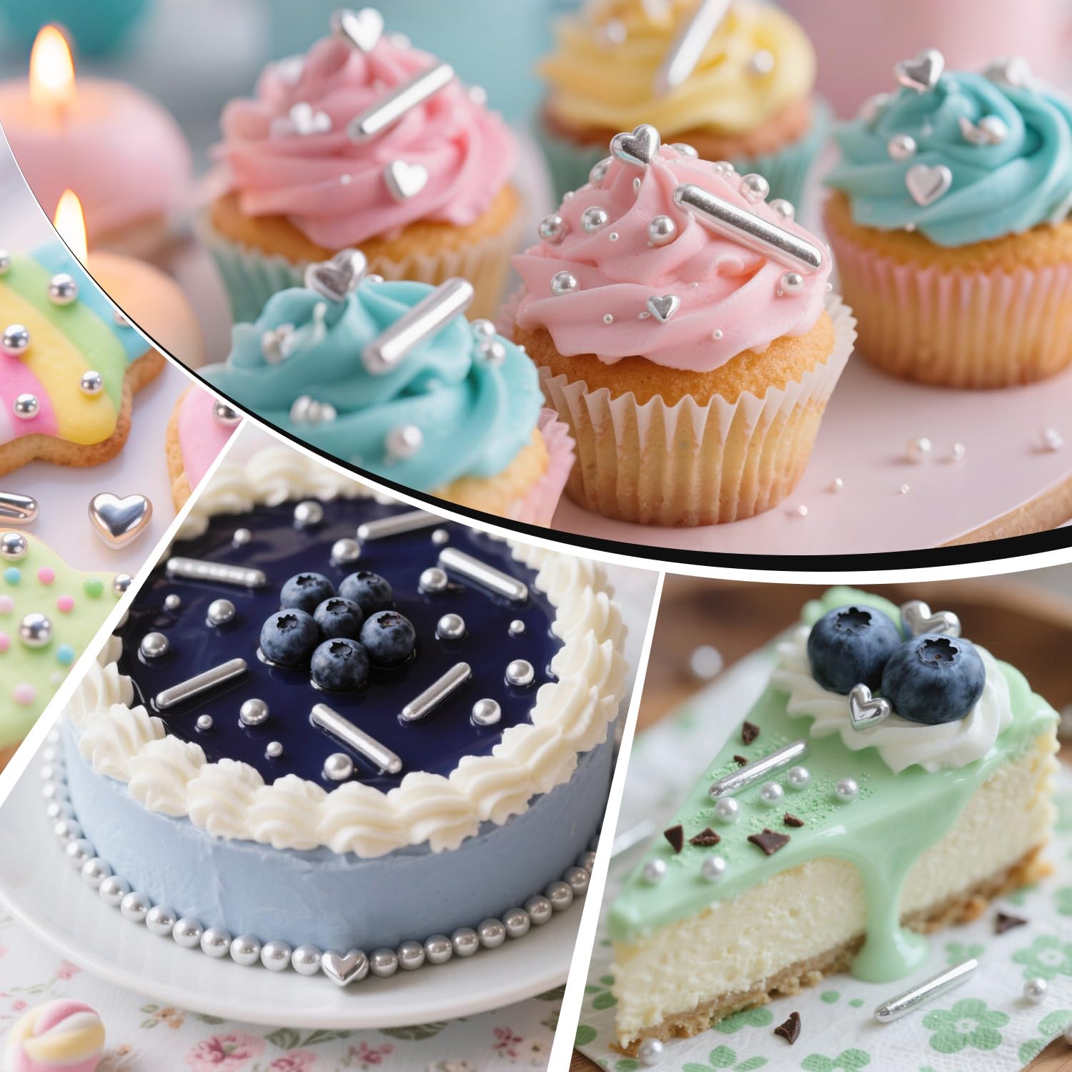 • Silver Pearl Rods Hearts Sprinkles bring a sweet and romantic element. These sprinkles are easy to use and can be applied to a wide variety of baked goods. They can be used to decorate the tops of cakes, add a decoration to cupcakes, or sprinkle on cookies and more.