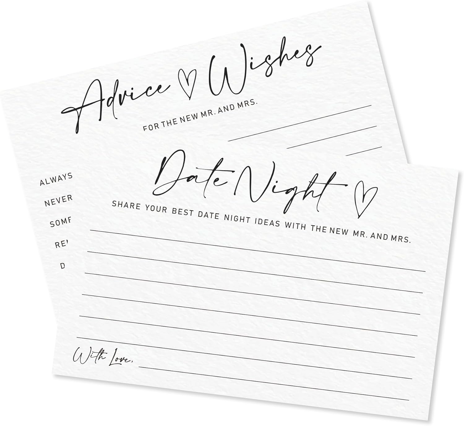 Advice & Wishes Card Set - Minimalism White - 15 Advice & Wishes Cards & 15 Date Night Cards Cards For New Couple, Newlyweds, Engagement, Wedding Party Favor & Supplies - B01