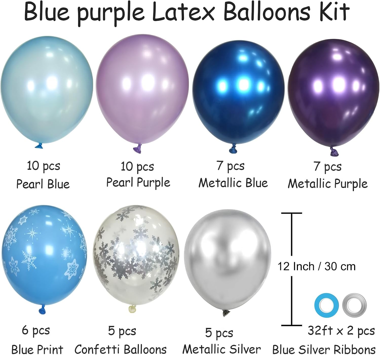 • 【Blue and Purple Silver Balloons Kit】: Our snow balloon blue purple silver party balloons decorations can add atmosphere to your party. silver blue purple balloon is the perfect decoration for happy occasions or celebratory moments such as blue silver themed parties,birthday decorations, princess winter party decorations, decorations suitable for both indoor and outdoor events.