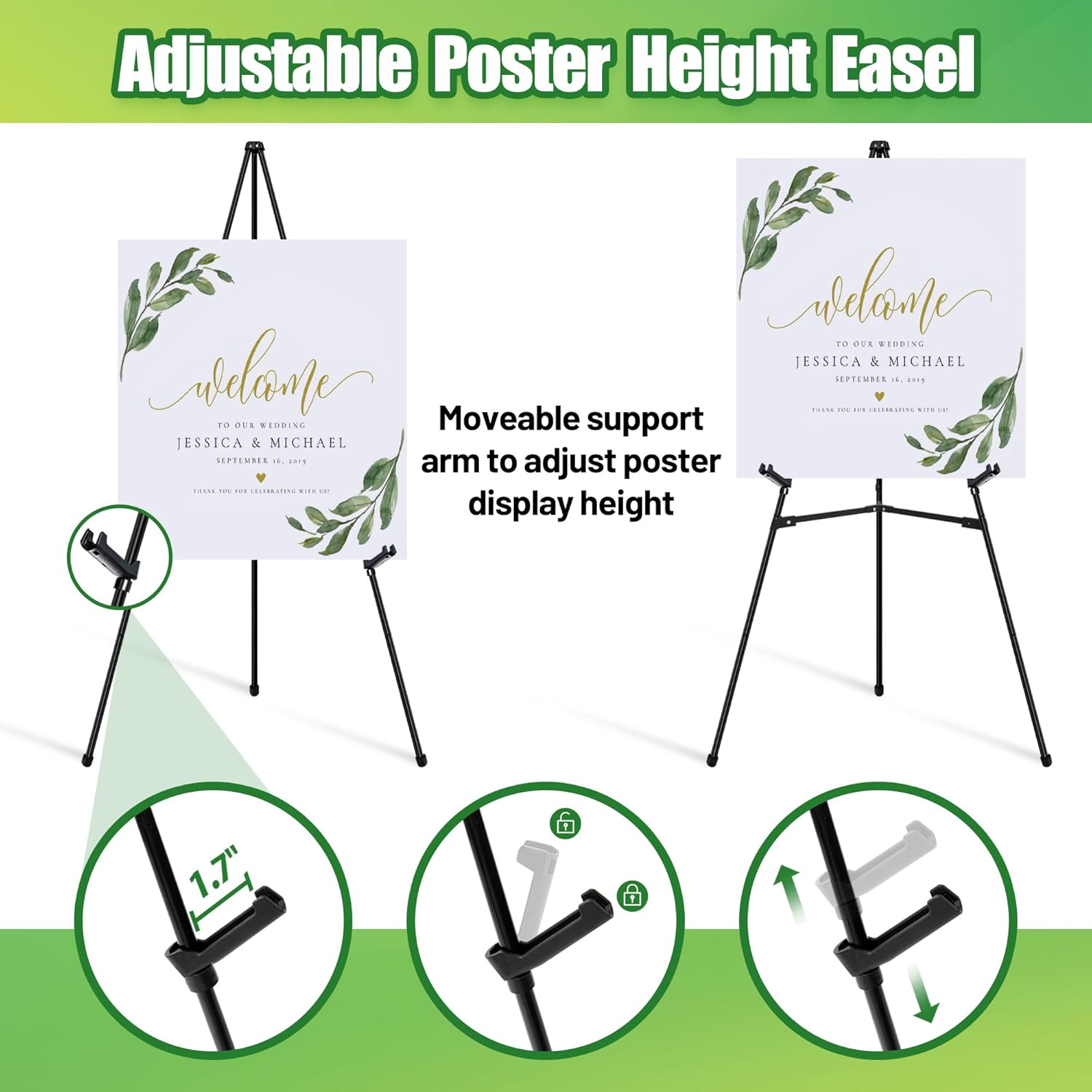 • Multifunctional Display Easels: Can be used for weddings, birthday parties, baby showers, bridal showers, anniversaries, graduation parties, art exhibits, etc; Ideal for wedding sign stands, welcome sign stands, poster easels, painting easels