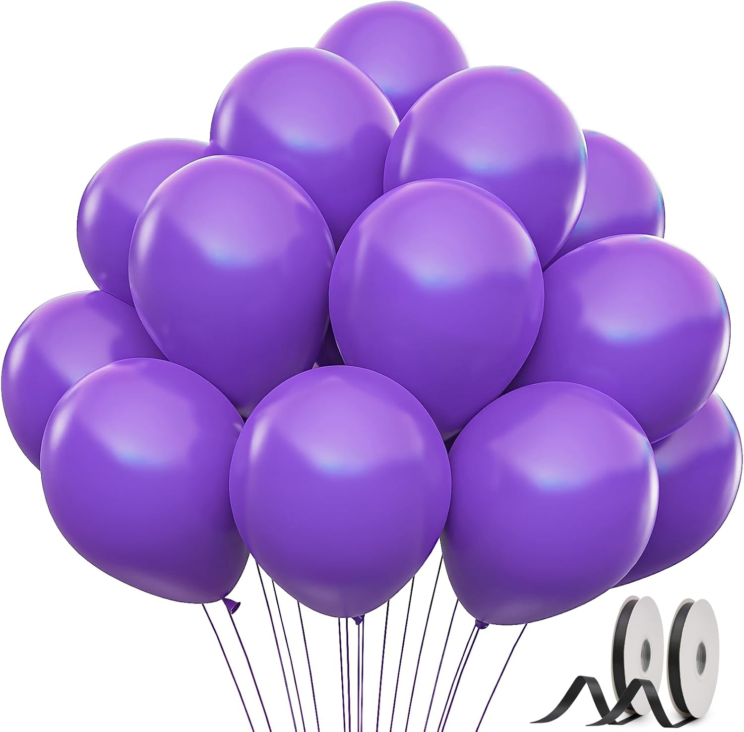 • 12 Inch Purple Balloons: Includes 100 Purple balloons, with 2 rolls of balloon ribbons. These Purple Halloween balloons weigh 2.8 grams each, enough quantity can meet your festival or party decoration needs. We use Grade A materials and are confident in the quality of our Halloween balloon decorations.