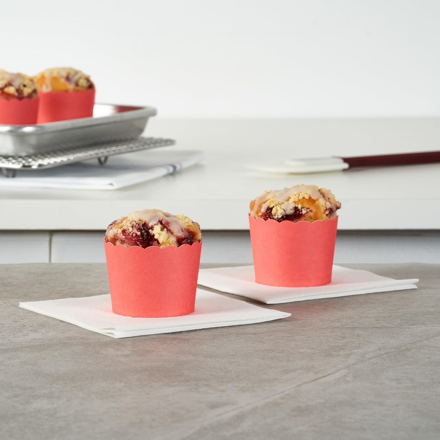 • STYLISH LOOK: These cupcake wrappers have scalloped edges that perfectly complement and add an adorable touch to your cupcakes and muffins. Stand-alone design to streamline your baking process!