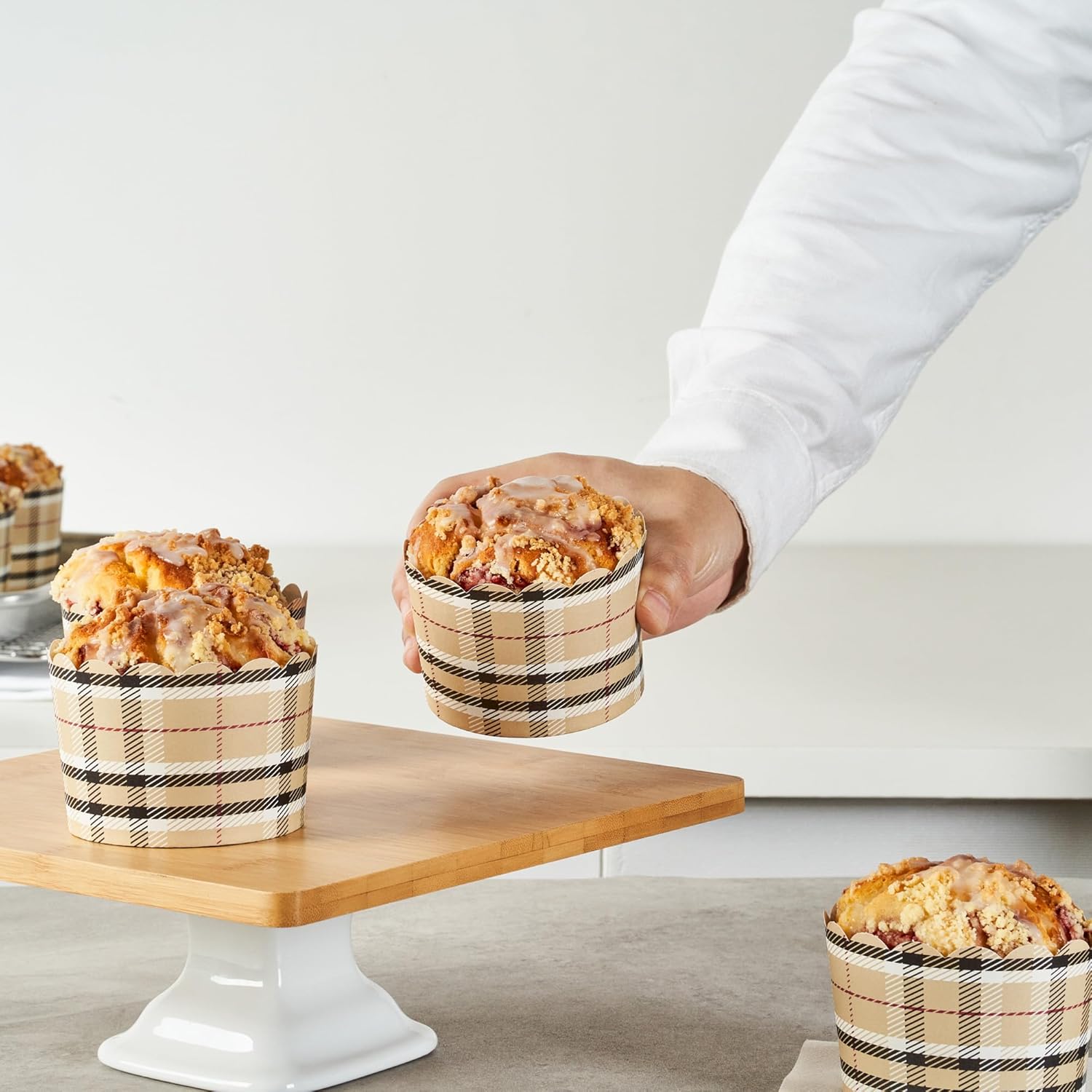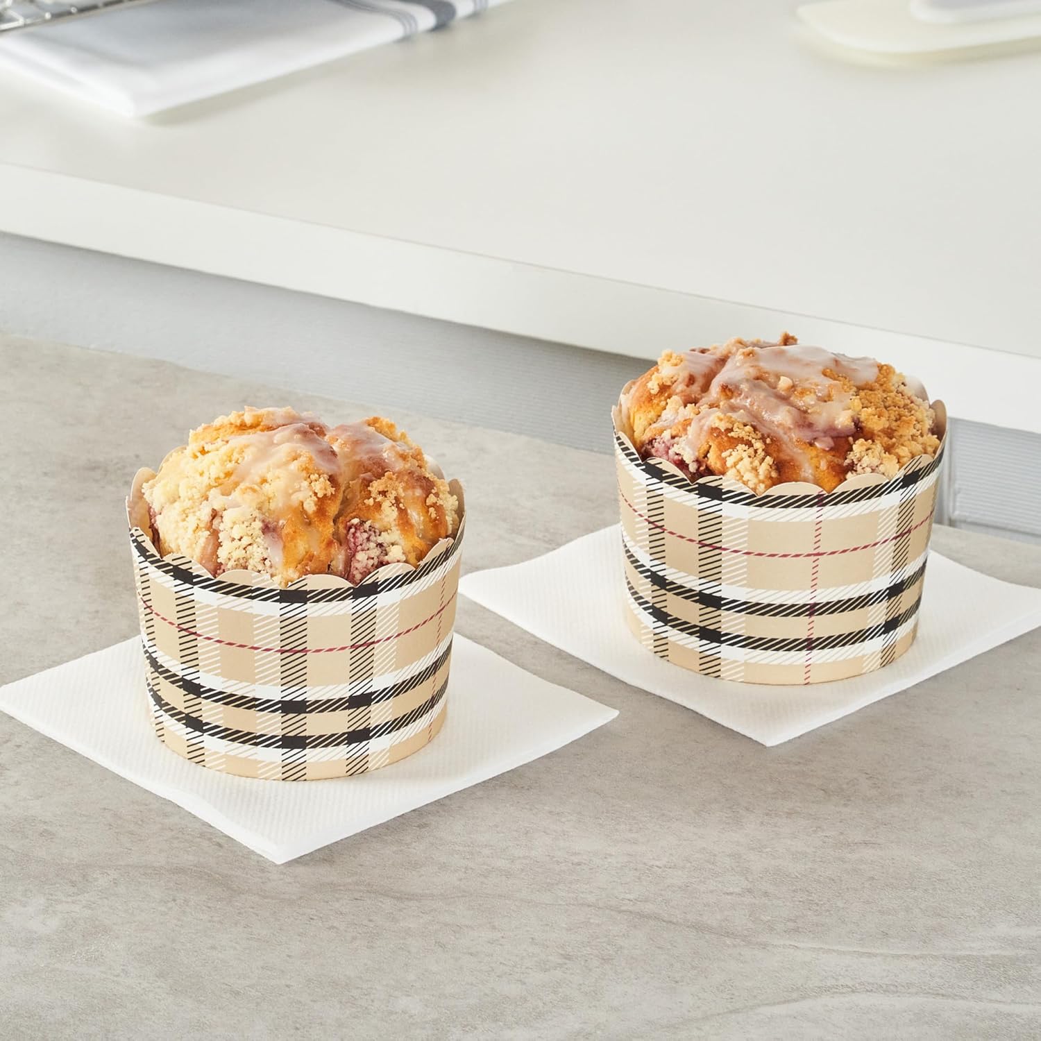 • SUSTAINABLE OPTION: Great for ecologically-conscious bakers! These disposable baking cups are made from sustainable paper material and the plaid pattern blends in with any type of cupcake decoration.