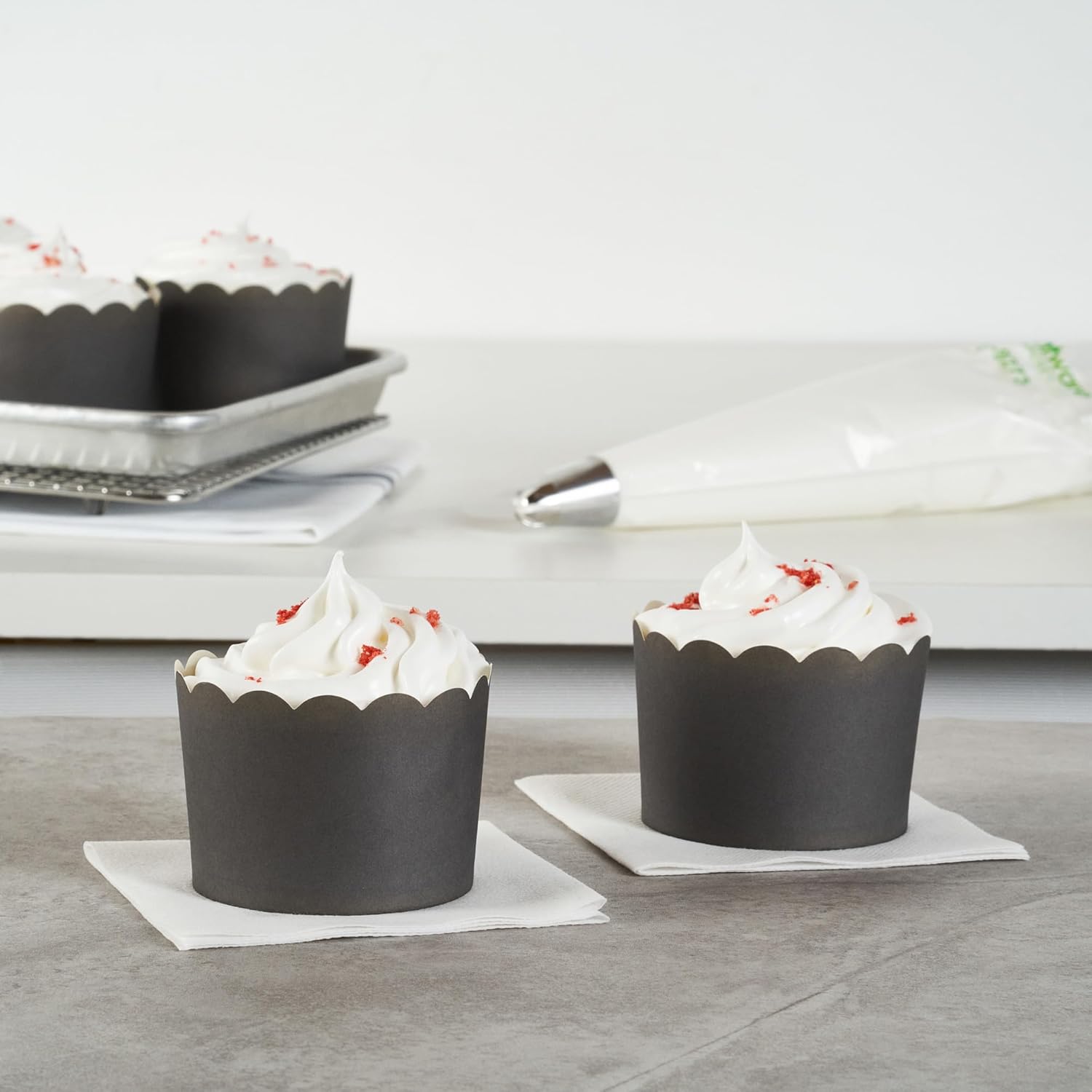 • SUSTAINABLE OPTION: Great for ecologically-conscious bakers! These disposable baking cups are made from sustainable paper material and the gray finish blends in with any type of cupcake decoration.