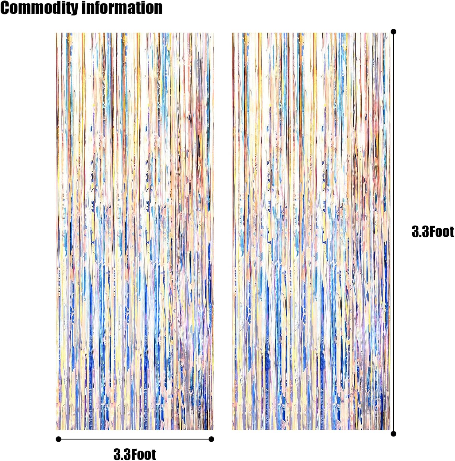 • PACKAGE INCLUDED : 2 pack of Iridescent foil fringe curtains, the size of each tinsel curtain is 3.2 ft x 6.5 ft, enough length for hanging on a door or covering a wall fully, suitable for any parties.