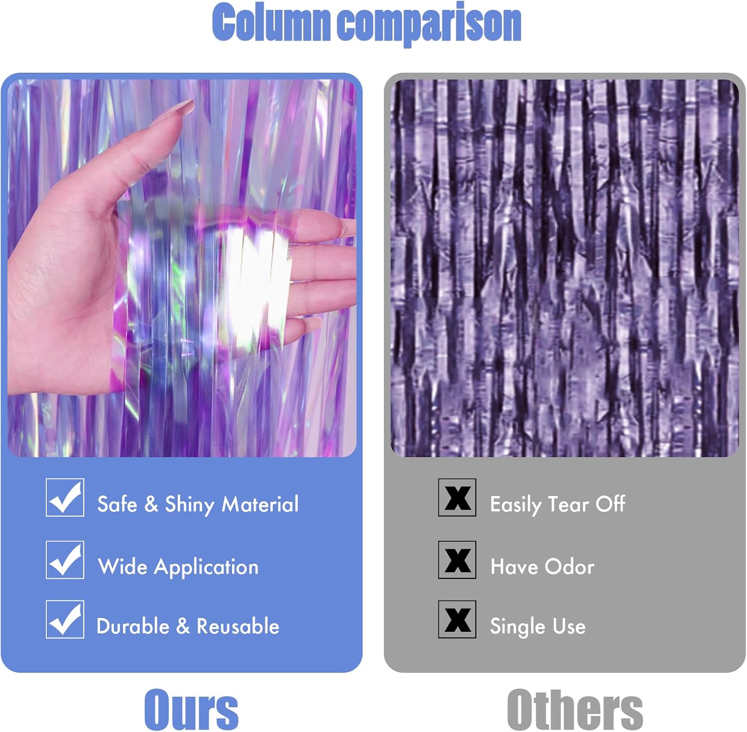 • PACKAGE INCLUDED : 2 pack of clear purple foil fringe curtains, the size of each tinsel curtain is 3.2 ft x 6.5 ft, enough length for hanging on a door or covering a wall fully, suitable for any parties.