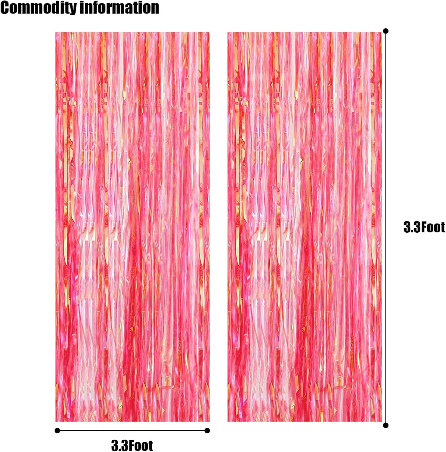 • PACKAGE INCLUDED : 2 pack of clear pink foil fringe curtains, the size of each tinsel curtain is 3.2 ft x 6.5 ft, enough length for hanging on a door or covering a wall fully, suitable for any parties.