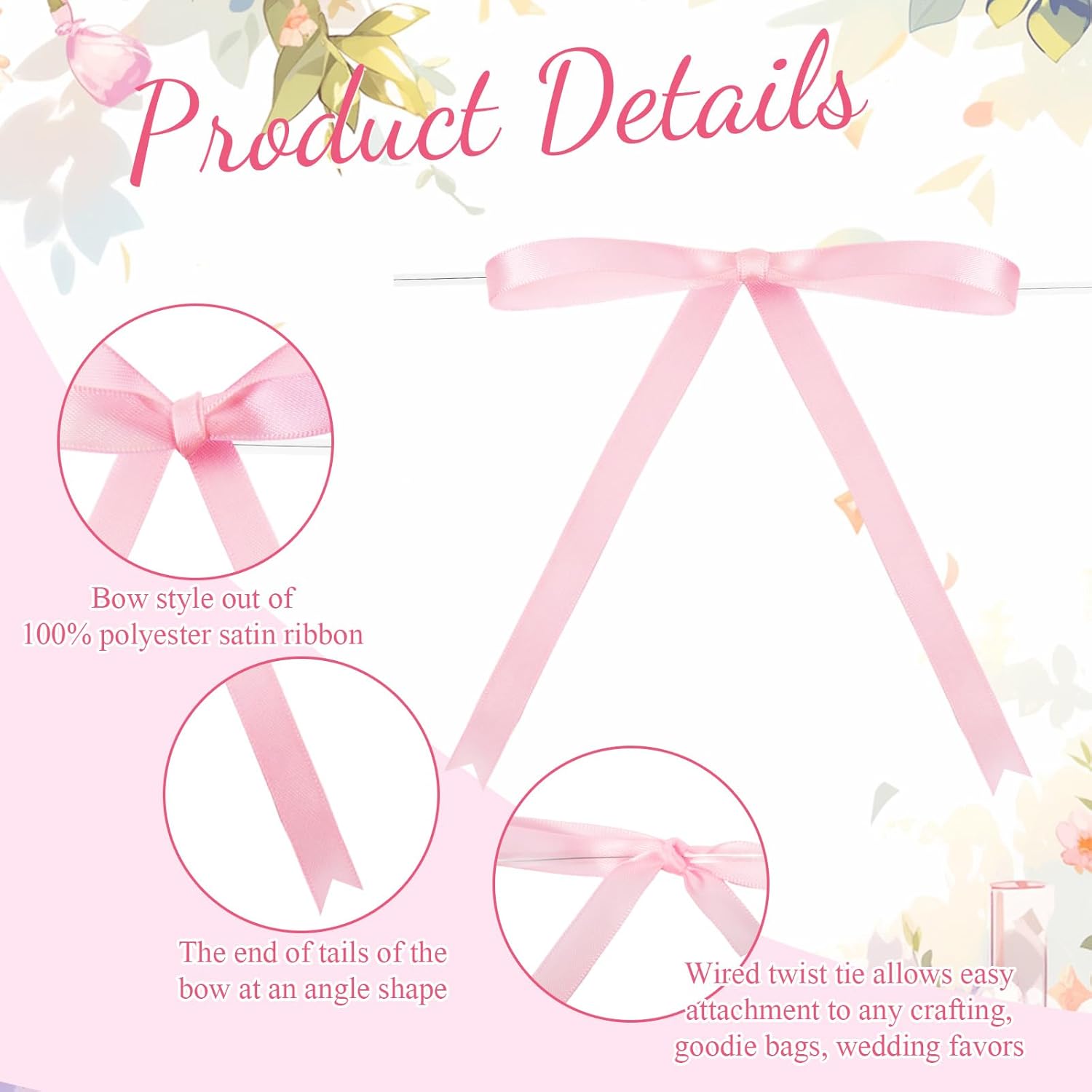 • Pink Twist Tie Bows: our package includes 100 pink ribbon bows and 100 twist ties; This set will easily meet your various needs for decoration or DIY projects; The dimensions of our bow are approximately 5 x 7 inches/ 12.7 x 17.78 cm; The decent size is suitable for decorating gifts, packages, and other items; You can have fun with family and friends making eye catching decorative pieces by DIY