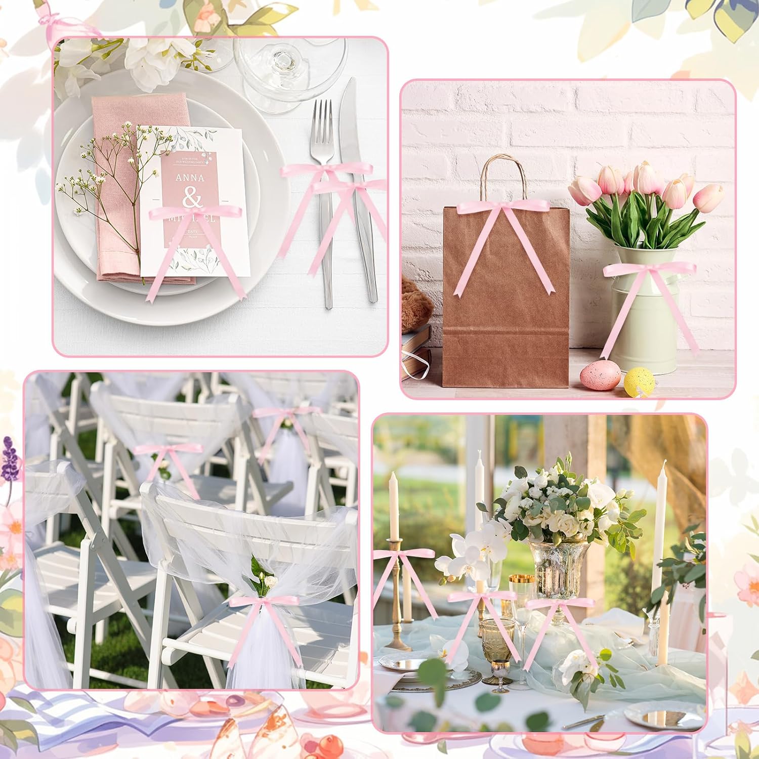• Multipurpose Decoration: our pre tied bows can be utilized in many ways; From fixing various plastic bags like snack bags, gift bags, candy bags, cookie bag, bread bag and more, to decorating Christmas trees, gift boxes, gift baskets, bottles, invitation cards, hairpins, scrapbooks and other DIY projects; You can use your imagination to make fun and beautiful objects with family and friends