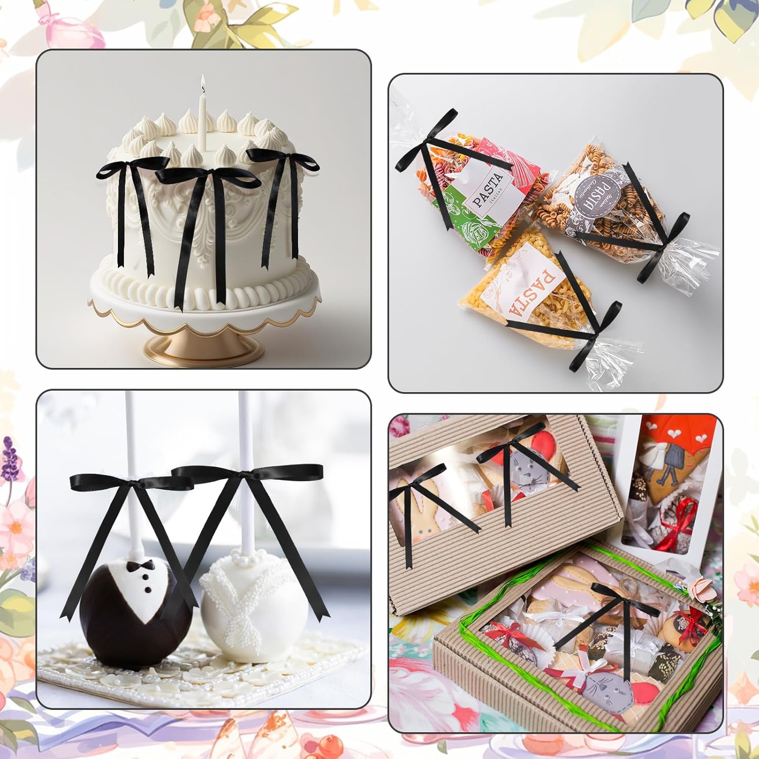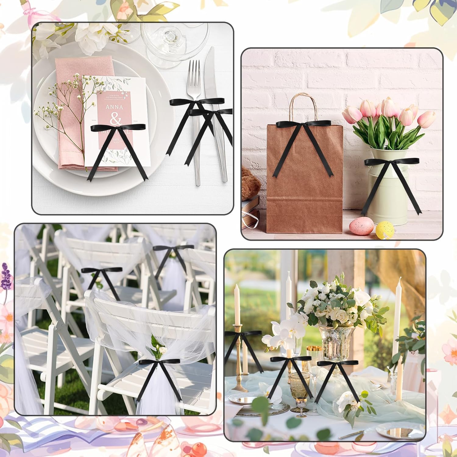 • User Friendly: these black satin bows for crafts are handmade and pre tied, including a detachable wire tie at the back that simplifies their use and storage; They are convenient and practical, allowing you to easily attach to places or items you want to decorate, such as gift wrap, cookie bags, rattan bags, DIY crafts; These bows can save you time and provide you with decorative inspiration when making crafty bows