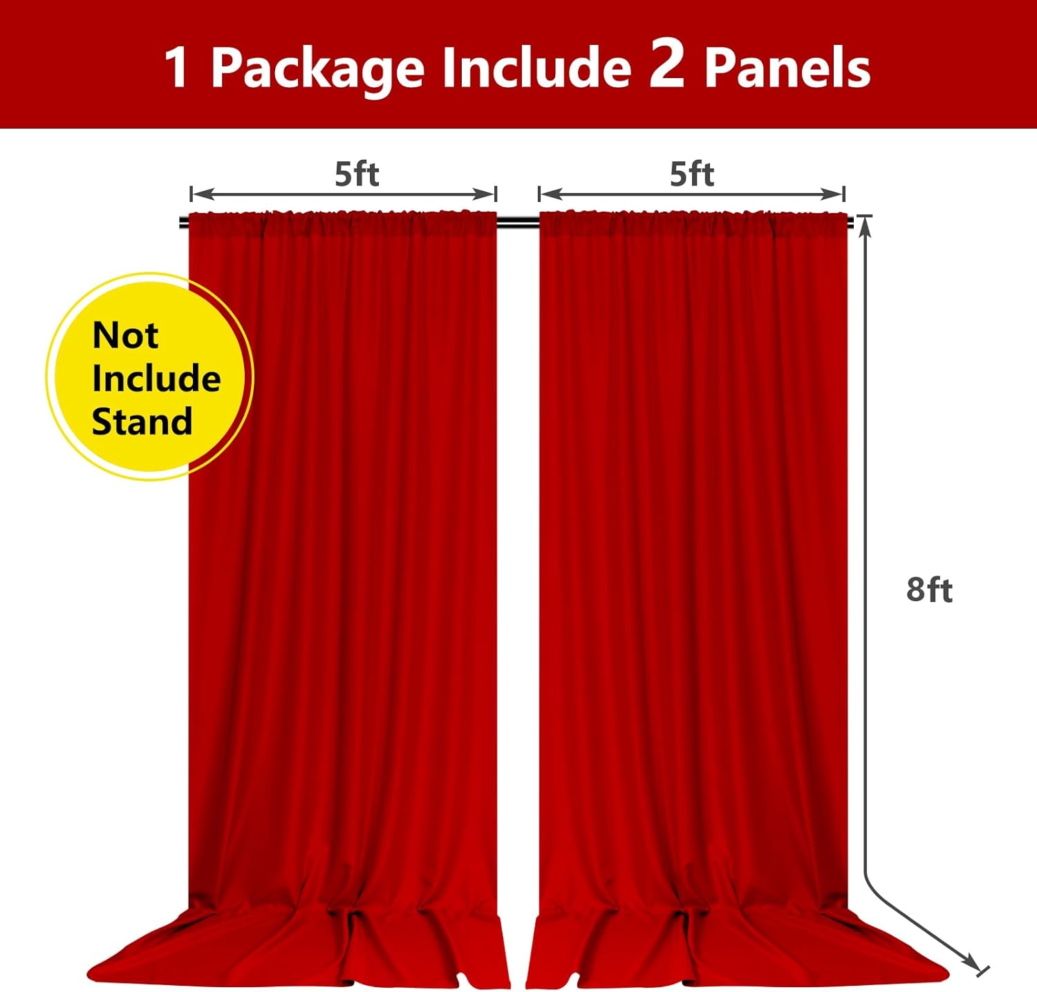 10ft x 8ft Red Backdrop Curtains for Party Valentine's Day Arch Stage Wedding Ceremony Curtains Fabric Photography Backdrop for Baby Showers Rod Pocket Home Decoration, 5ft x 8ft, 2 Panels
