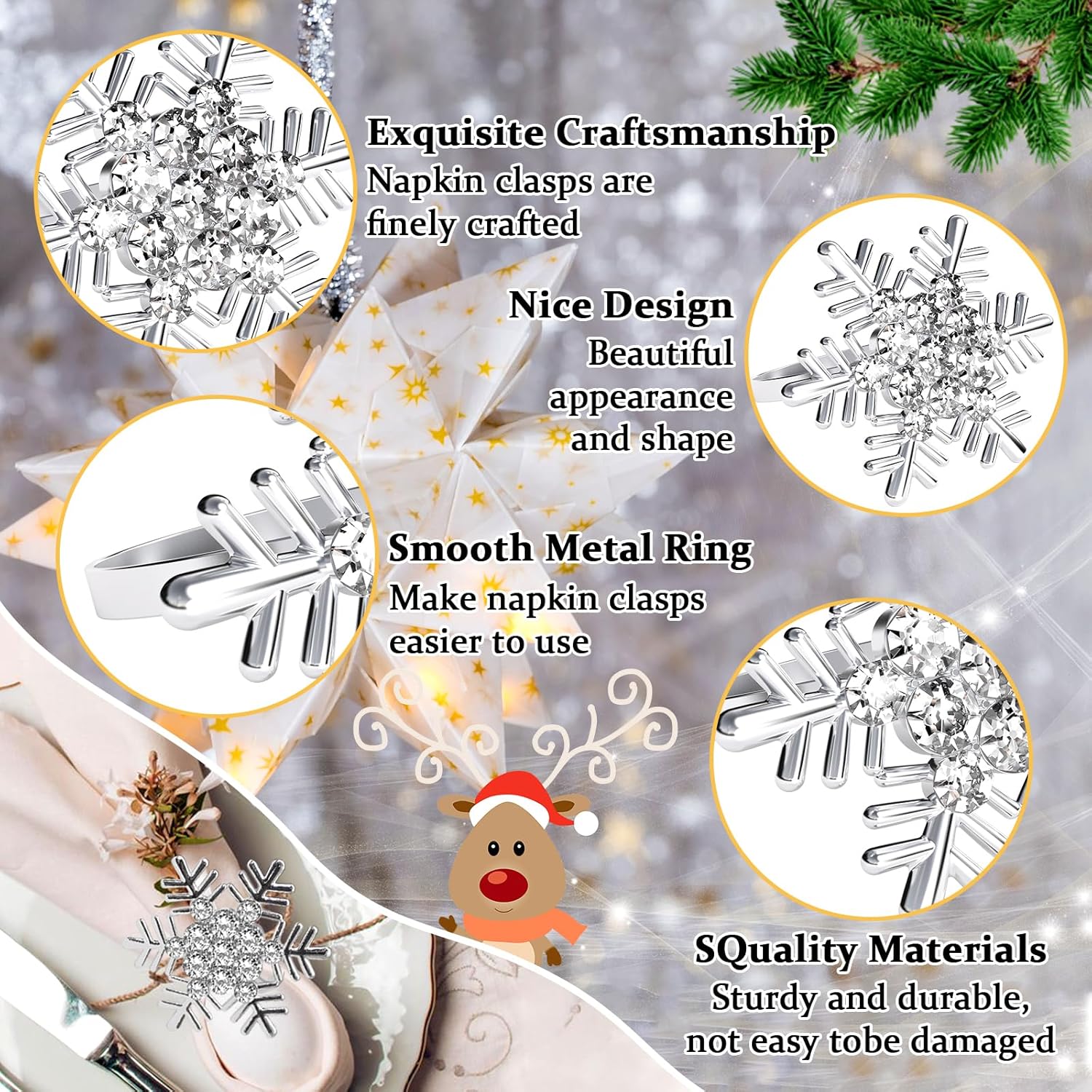 • 12PCS Delicate Xmas Napkin Rings: You will recieved set of 12 stunning rhinestone-studded snowflake napkin rings, which are gorgeous and can make your Christmas table, wedding reception, Valentine's party and daily dinner beautiful and classy.