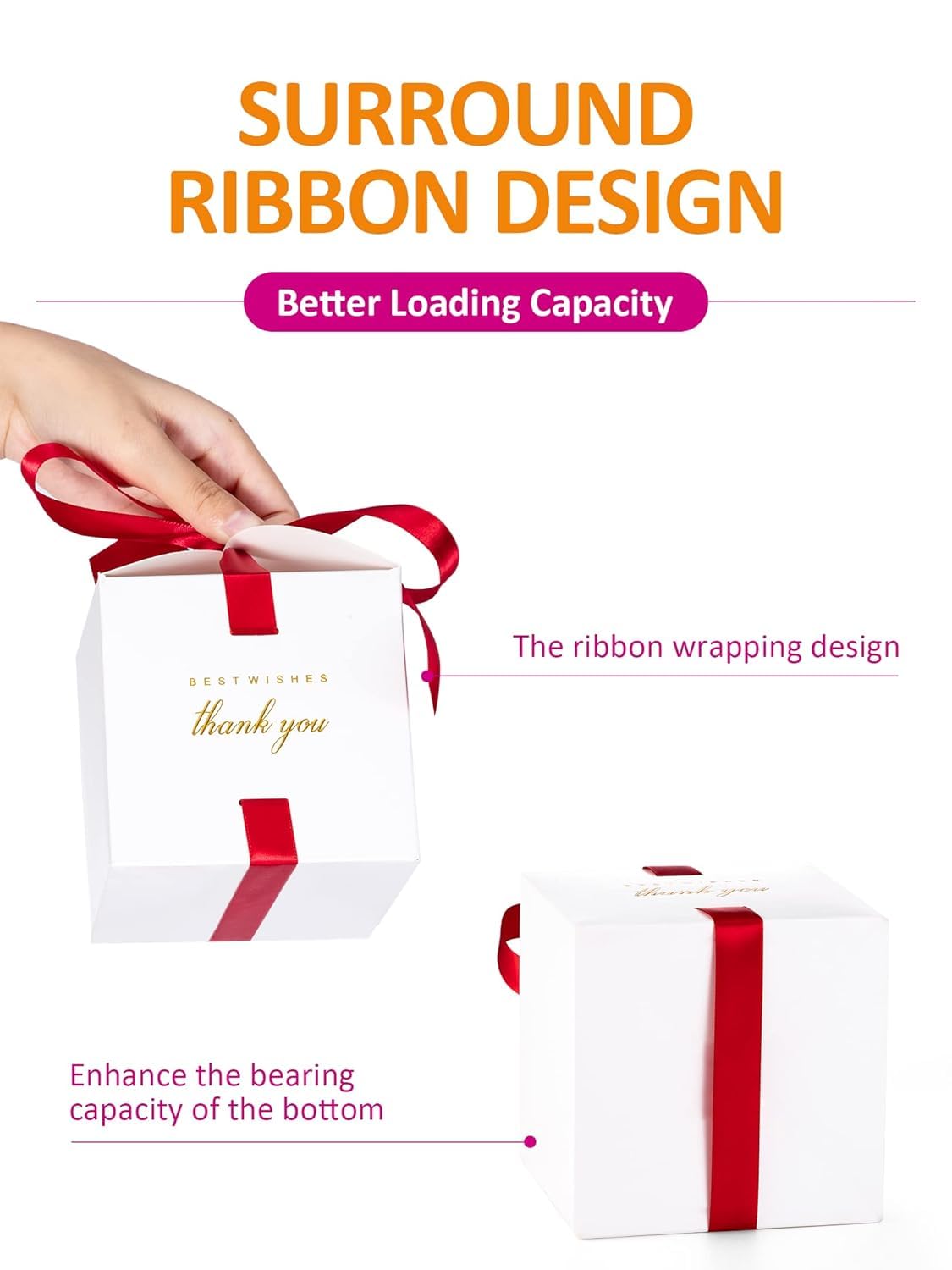 • Small Gift Box with Ribbon: There are 400 white gift boxes and red ribbon, and you can cut the length you need to wrap your gift boxe.Our ribbon width is 16mm, and the size is suitable for tie a bow.This red ribbon is not only unique and beautiful, but also can hold the bottom of the gift box from sagging, enhancing the load-bearing capacity of the bottom!