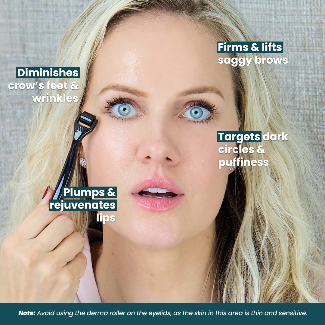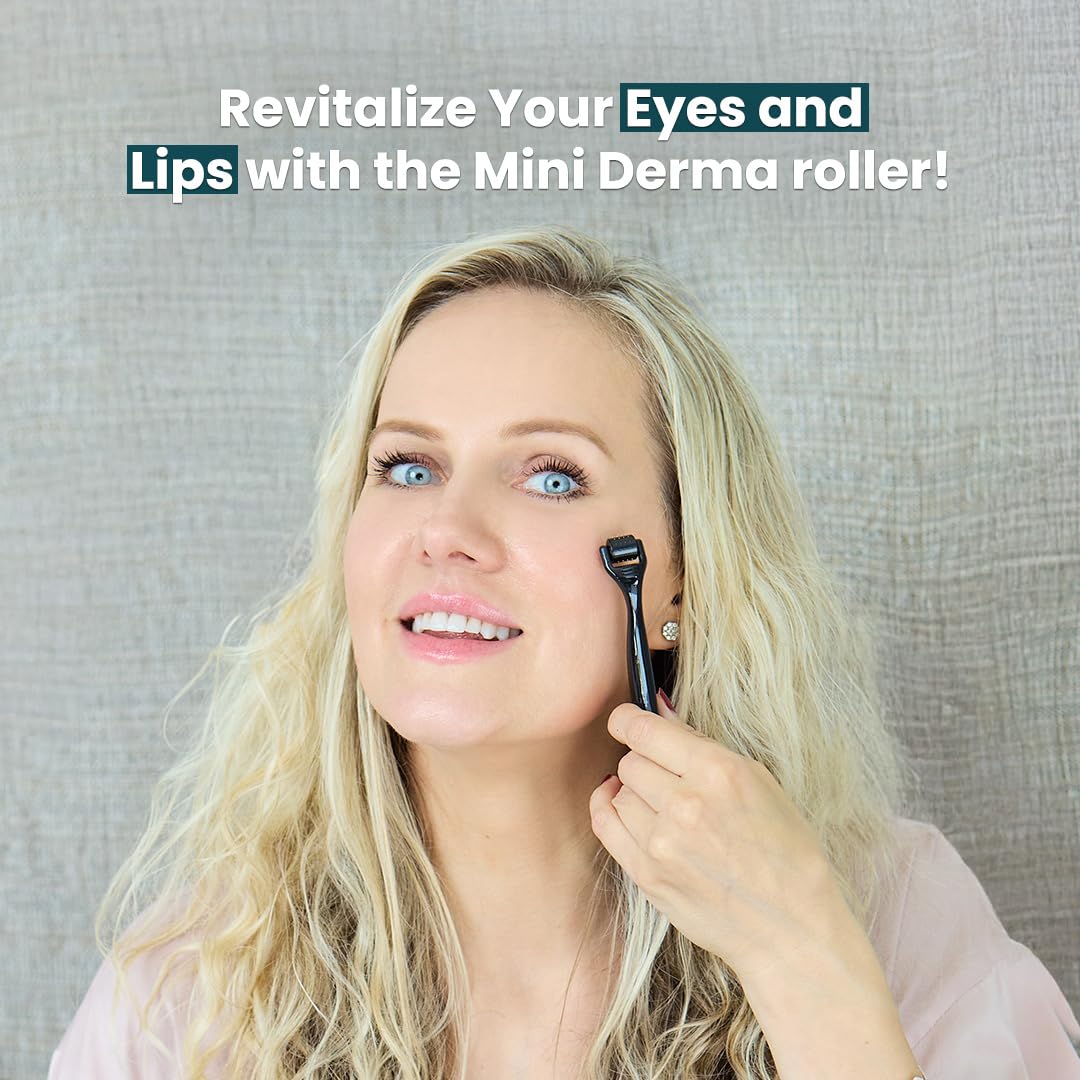 Gin Amber Beauty Mini Derma roller (0.25mm) - 48 Real Individual Needles, Microdermabrasion Device for Skin Care, Serum Absorption with Microneedling, Tool, Hygienic Case (Black Mini 0.25mm)