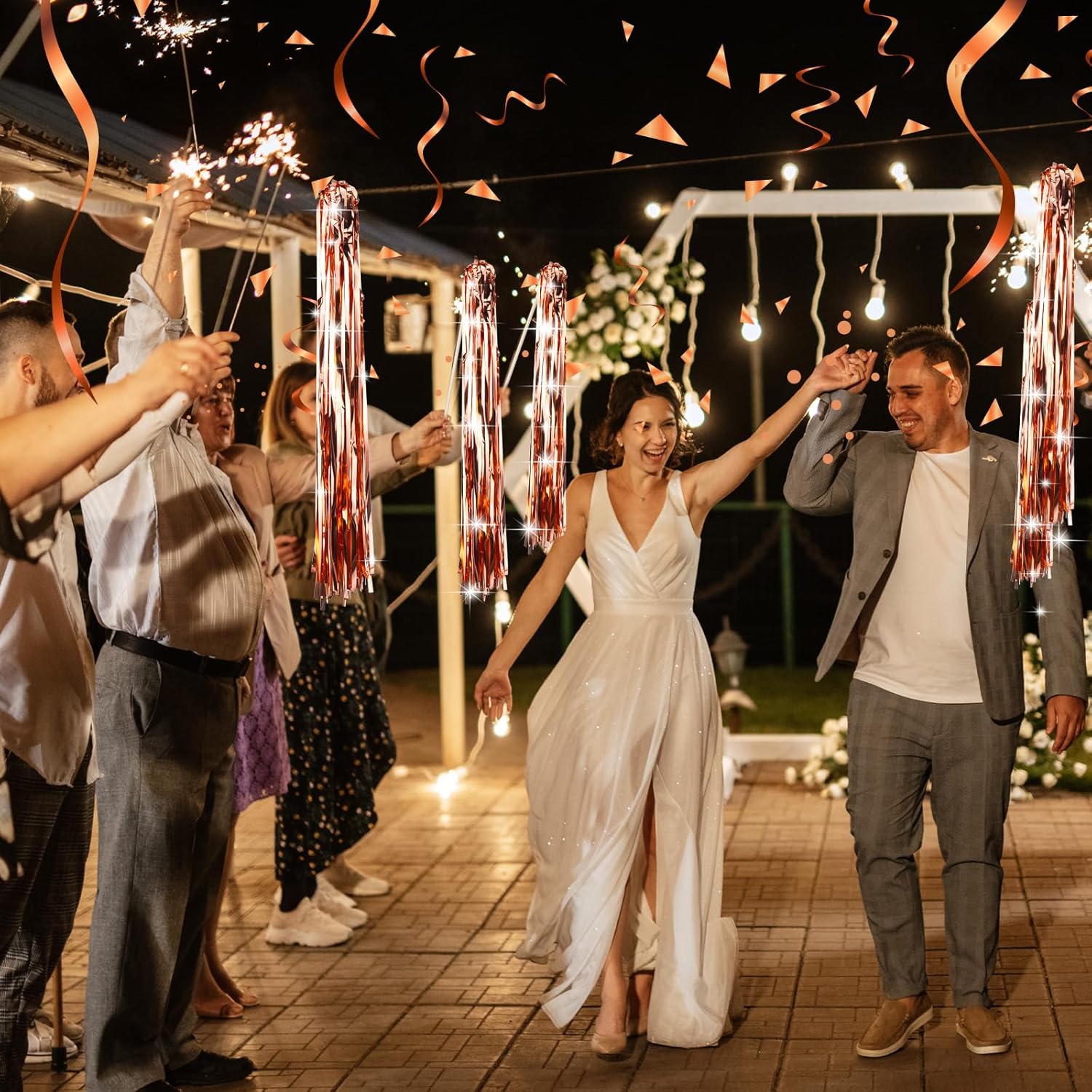 50 Pcs Wedding Fairy Wands with Bells Foil Tinsel Ribbon Stick Wands Tinsel Party Streamers with Bell Glittery Bridal Wedding Send Off Ideas Holiday Celebration (Rose Gold)