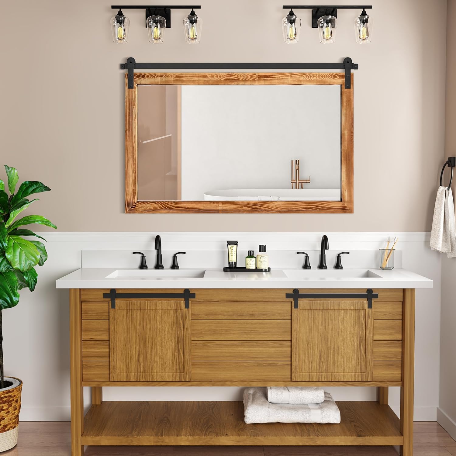 COGOOD Farmhouse Bathroom Mirror - 49 x 30 Rustic Wood Framed Wall Barn Door Mirror for Entryway, Living Room, Entryway Wall Decor (Brown)