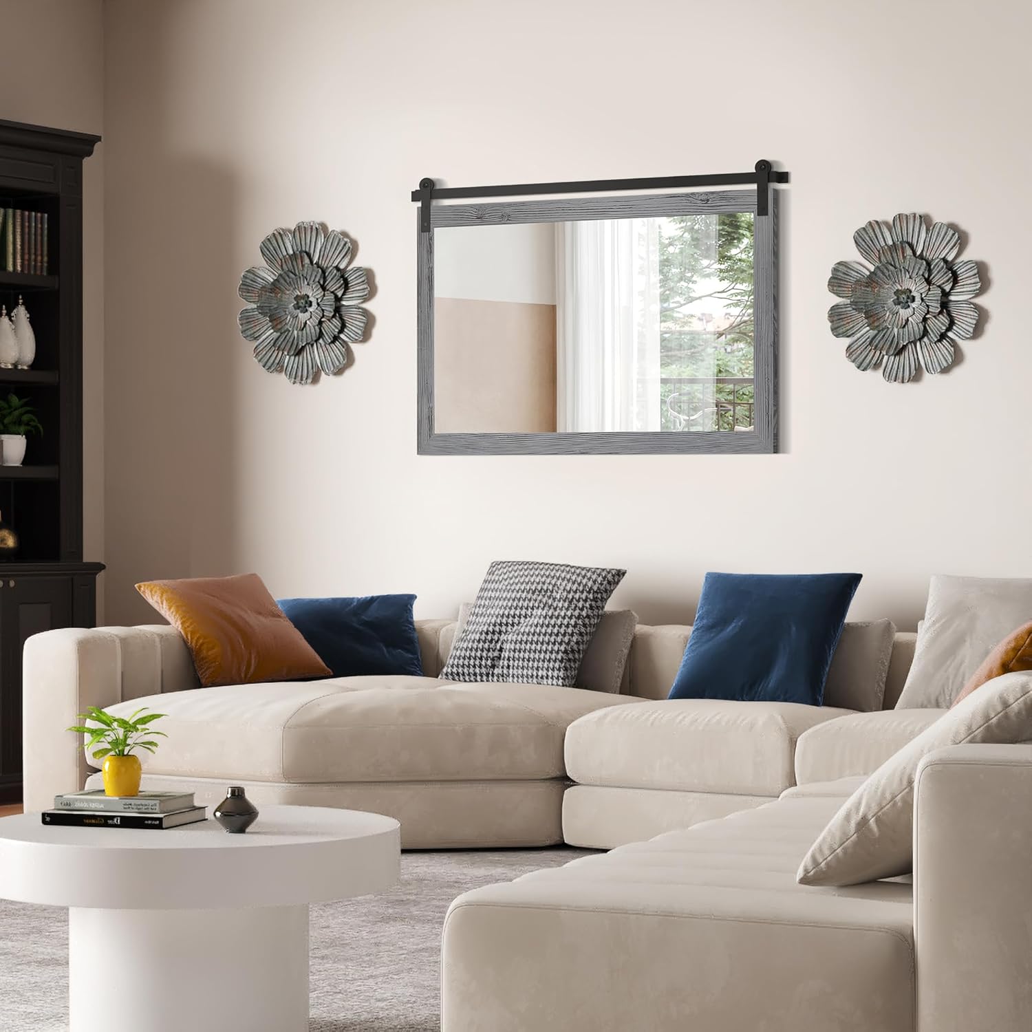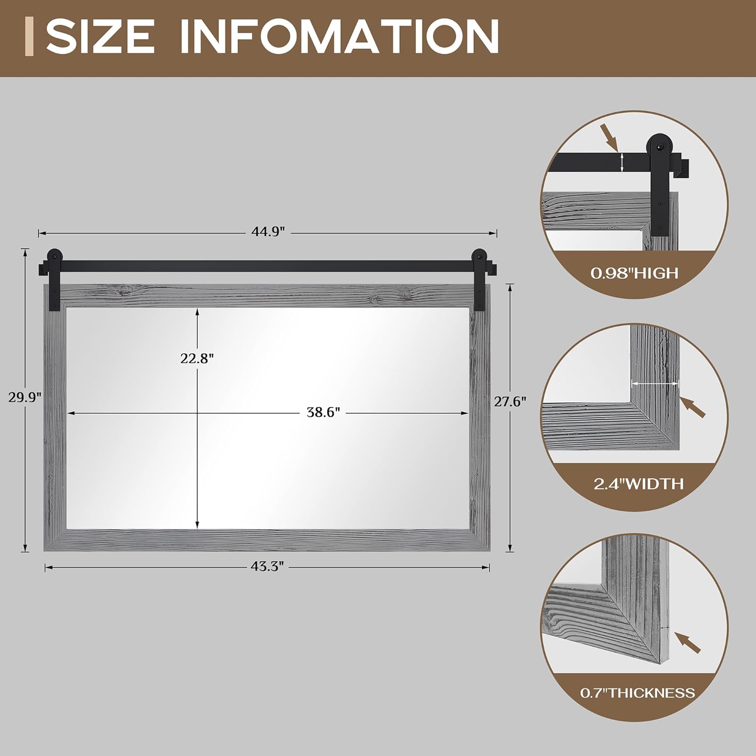 COGOOD Farmhouse Bathroom Mirror - 45 x 30 Rustic Wood Framed Wall Barn Door Mirror for Entryway, Living Room, Entryway Wall Decor (Grey)