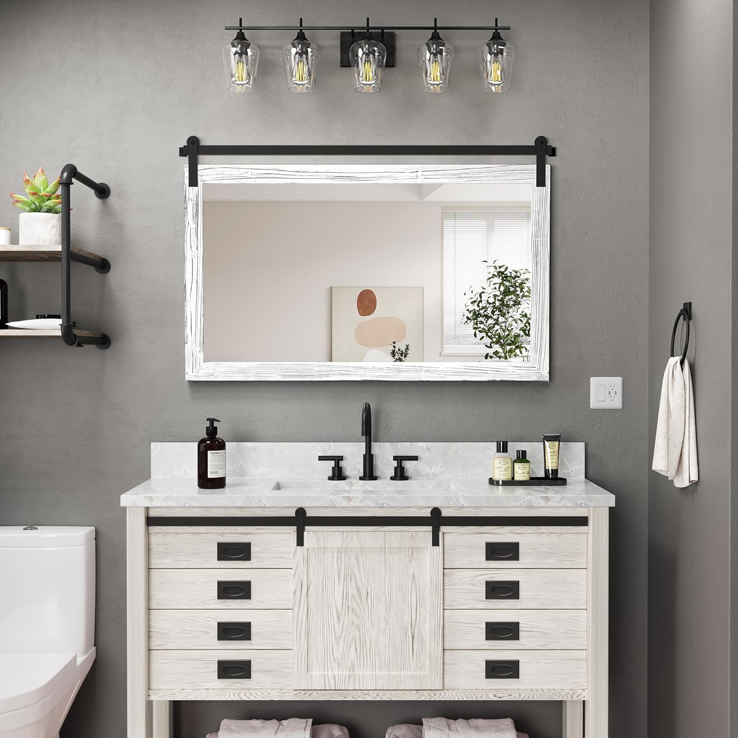COGOOD Farmhouse Bathroom Mirror - 45 x 30 Large Rectangle Barn Door Mirror for Vanity, Bedroom, Living Room Wall Decor (White)