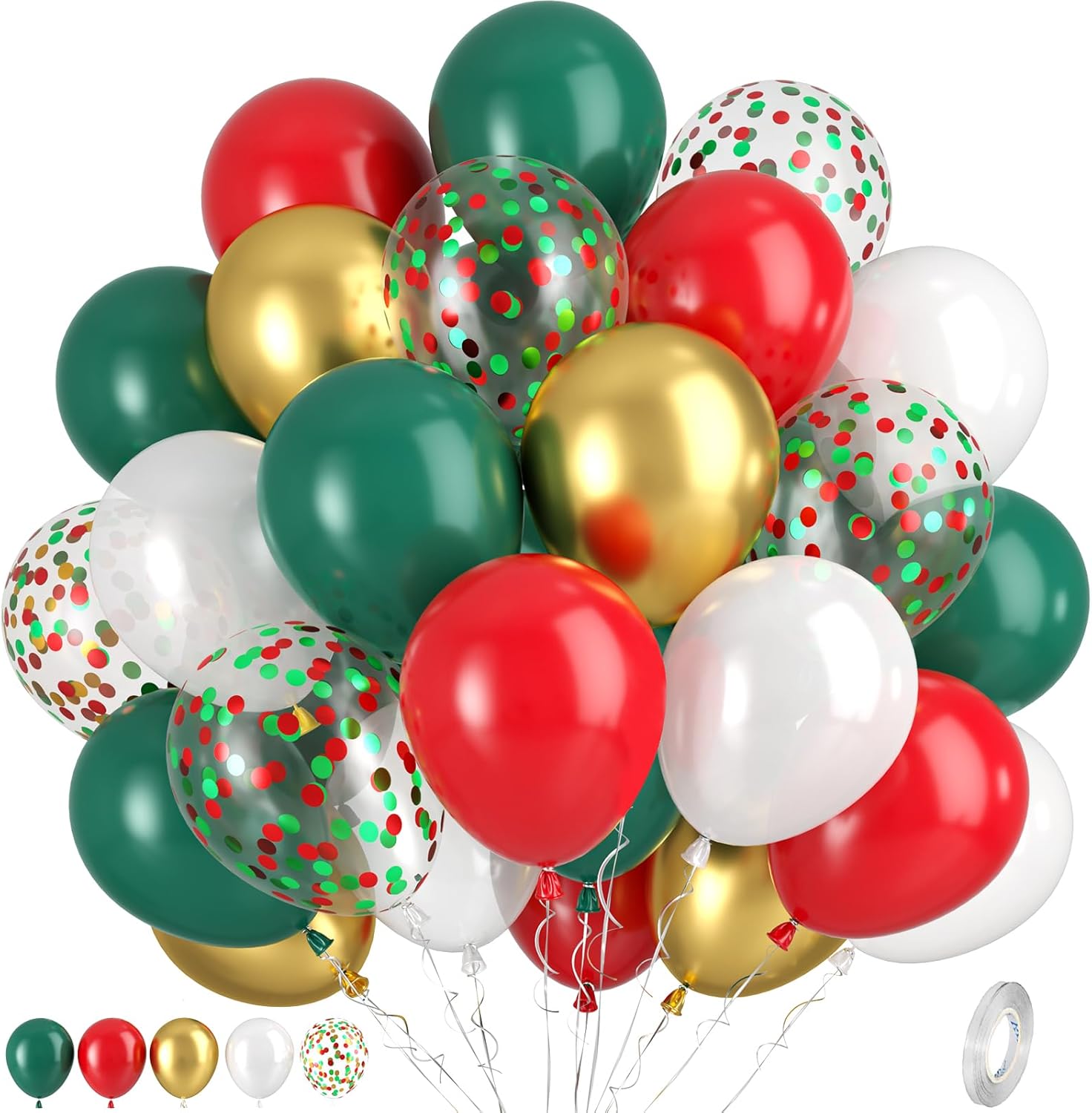 • 12 inch Red Green White Balloons Set: 12pcs dark green balloons, 7pcs metallic gold balloons, 12pcs matte red balloons, 12pcs pearl white balloons, 7pcs red and gold confetti balloons, 1pcs silver ribbon in our party balloons set. Our Christmas balloons add that perfect touch of holiday magic. Suitable for decorating a Christmas party and will bring so much joyful atmosphere.