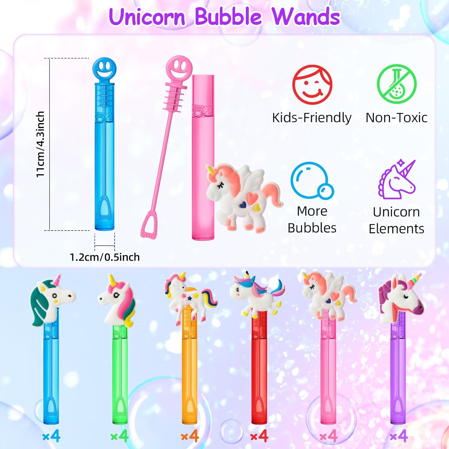 • Rainbow Unicor Party Favors: Our bubble wands with a convenient small size, these mini bubble magic wands pocket favors are easy to carry around for kids toddlers, making them the ideal choice for indoor and outdoor parties, gatherings, and events. Let the magical bubbles bring joy wherever you go!